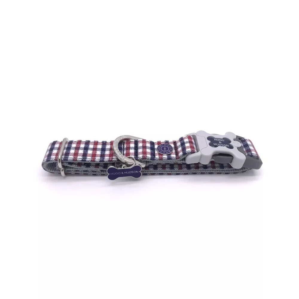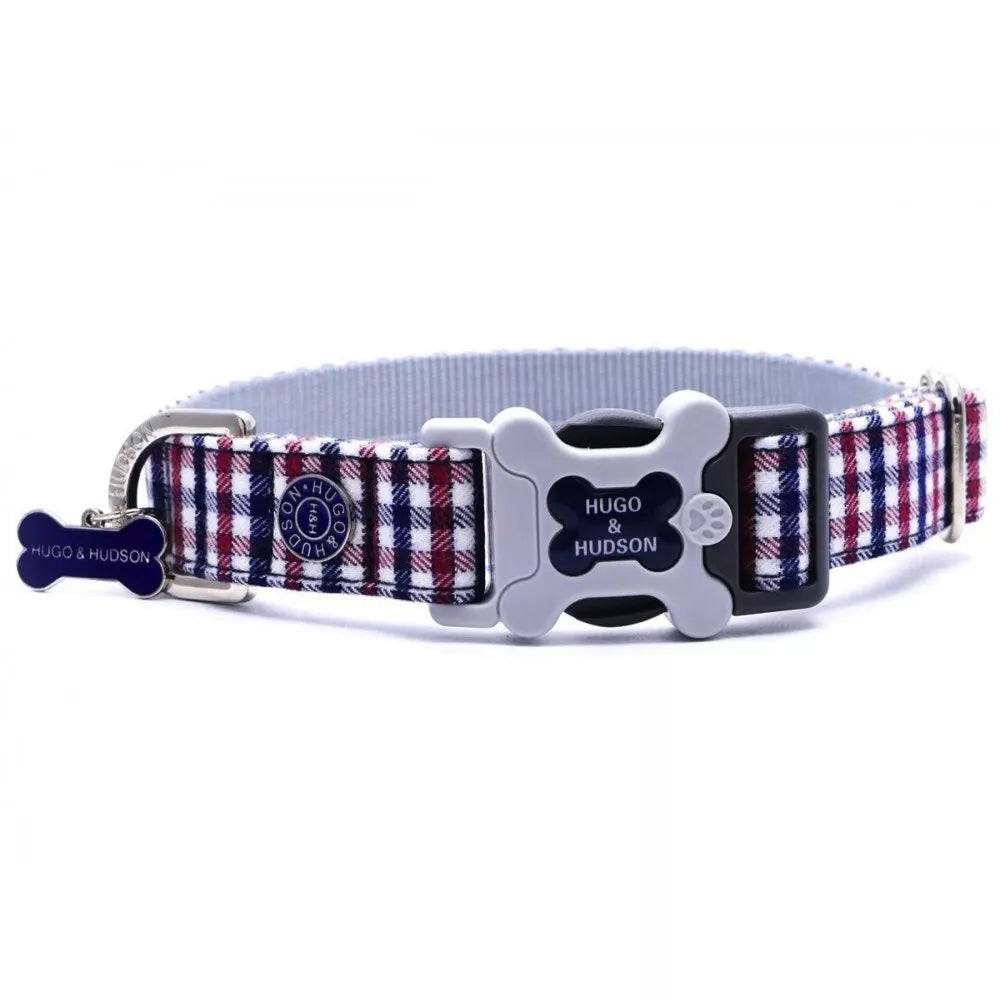 Dimensions: width 2.5 cm, neck circumference 34–49 cm STYLISH. Hugo&Hudson – high quality and style from Great Britain. We believe your pet should look like a true champion – stylish and distinctive. DURABLE. The collar is made from strong nylon fabric. SAFE. The plastic buckle, special rivets, and D-rings have been tested and can withstand up to 167 kg of tensile strength. DOUBLED. The collar is made from a double-stitched strap. EASY TO CLEAN. Machine washable in cold water. Product images are for illustrative purposes only. The product description is general, and not all features may be mentioned. Information on the product packaging is more detailed. We recommend referring to the information on the product packaging.