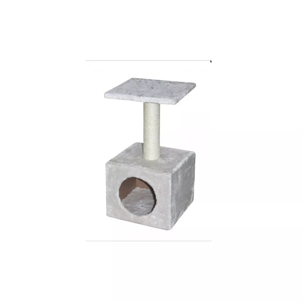 Cat scratching post with a soft plush house, a shelf, and a sisal scratching post. The scratching post prevents your cat from damaging furniture and carpets. To help your cat adjust to the new scratching post, use catnip if necessary. If your cat completely shreds the post, don't worry, you won't need to buy a new scratching post. You can replace only the post. House dimensions: 30x30 cm. Height: 57 cm. Post diameter: 7 cm. Product photos are for illustrative purposes only. The product description is general in nature and may not mention all features. Information on the product packaging is more detailed. We recommend following the information on the product packaging.