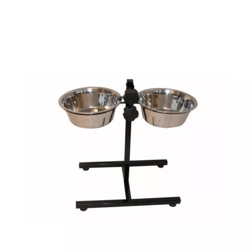 Introducing a high-quality set of bowls with an adjustable stand, designed to ensure your dog's comfort and health during mealtime. This set, comprising two 1.8-liter stainless steel bowls and a sturdy adjustable-height stand, is an ideal choice for dogs of all sizes.