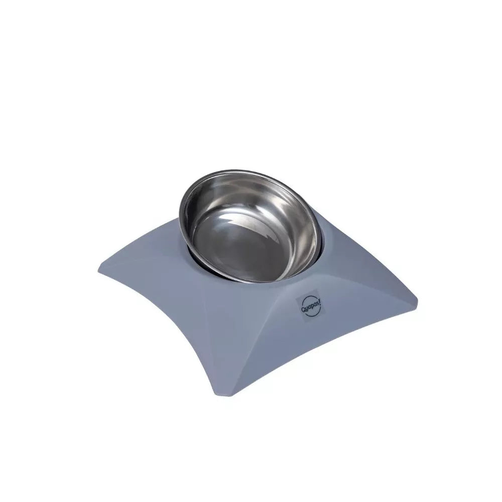 Introducing an elegant and functional bowl with a stand, measuring 17x17x4 cm. This grey bowl is perfect for both dogs and cats, providing them with a comfortable and hygienic feeding experience.