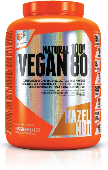 Extrifit® Vegan 80 - protein isolate exclusively from plant sources! Lactose-free! An excellent alternative to whey and milk proteins. This top-tier plant isolate boasts excellent parameters. A single scoop of Extrifit® VEGAN 80 contains up to 75% protein and up to 5000 mg of BCAA, compared to various plant proteins you may have encountered. This means the protein source is completely equal to whey protein, with practically the same amino acid profile, making it highly suitable for muscle mass growth and development.