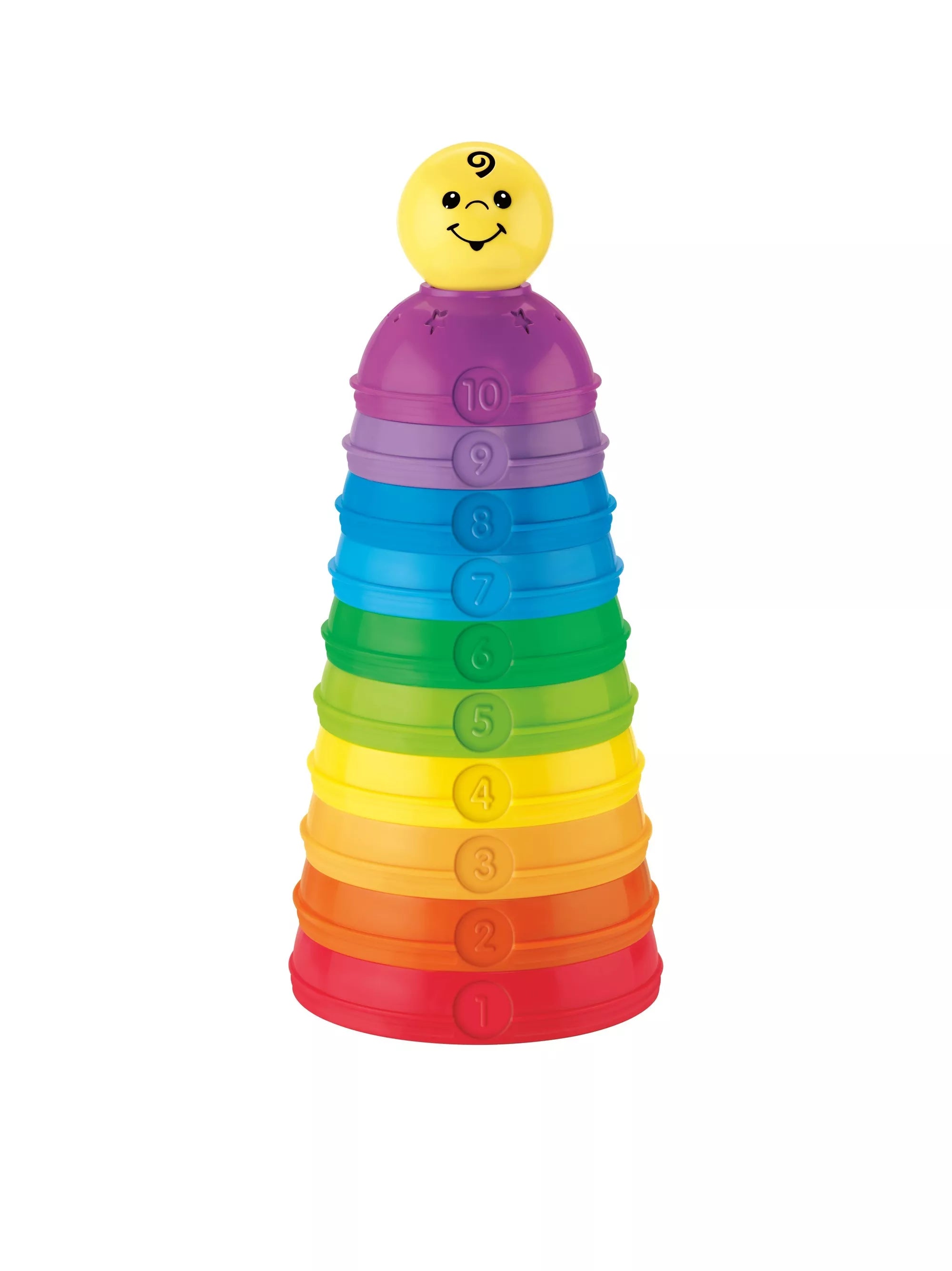 From 10 round shapes in different colors and sizes, your child can build a colorful tower or connect them into a ball. This toy develops your child's motor skills, hand-eye coordination, and thinking abilities. For children aged 6 months and up.