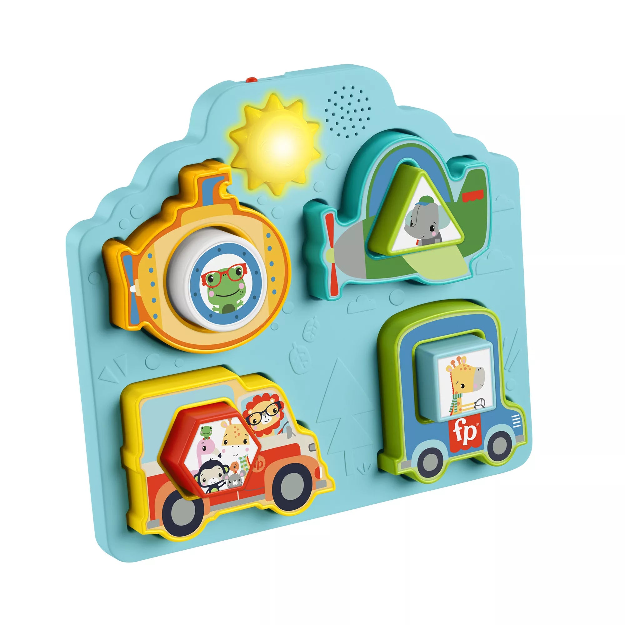 * When your child places the correct vehicle or animal figure in its spot, they'll hear a corresponding sound and see lights.