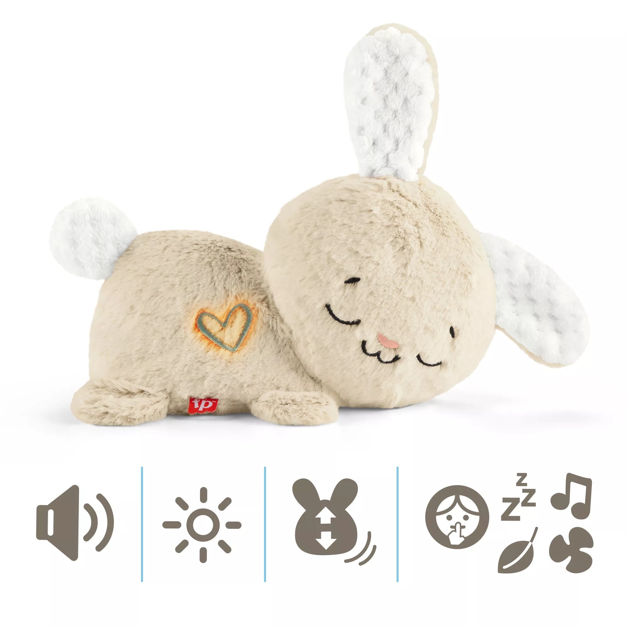 · Features five soothing sounds: music with a gentle yawn and snore, deep breathing, shushing, nature sounds, and white noise.