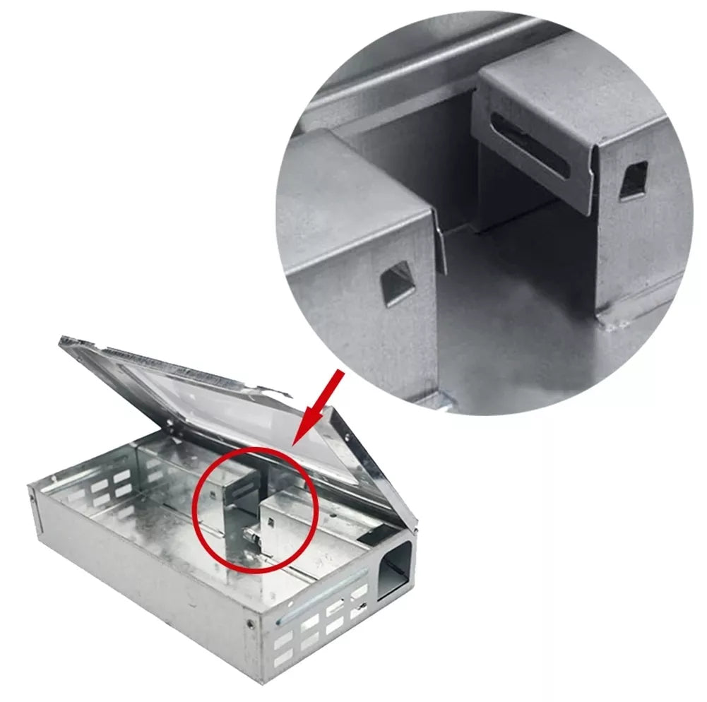This live-catch trap is made of high-quality steel, designed for indoor and outdoor use in various weather conditions. Very easy to use. The transparent top panel allows for easy checking of the situation inside the trap. Dimensions: 260x160x50 mm.
