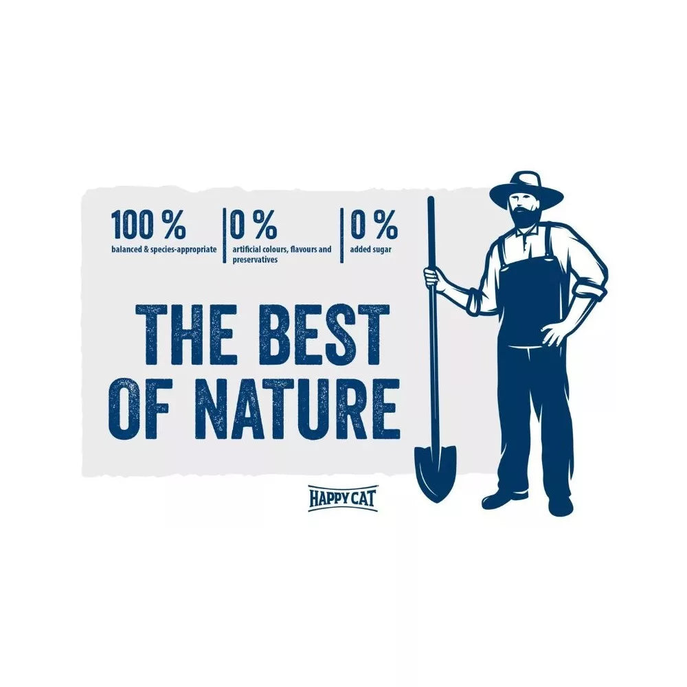 Complete Feed. Happy Cat Duo wet food is made from exceptionally high-quality beef and chicken, making it rich in protein....