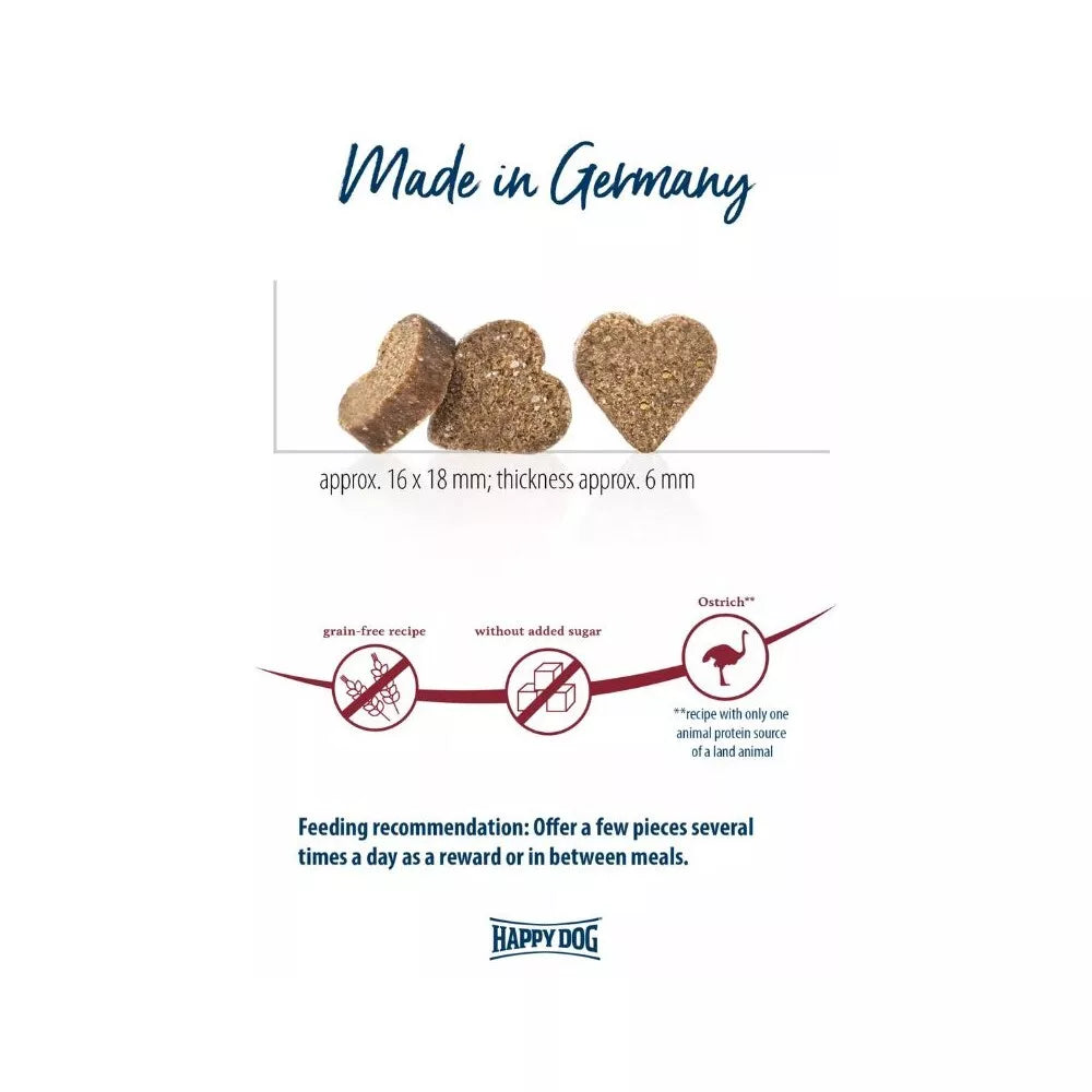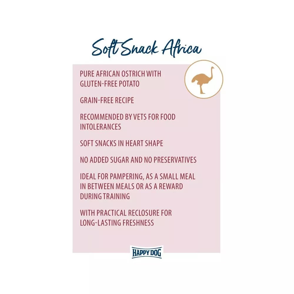 Dietary supplement for adult dogs. Soft, grain-free treats with ostrich meat. Soft, heart-shaped "Africa Snacks" treats are perfect for spoiling...