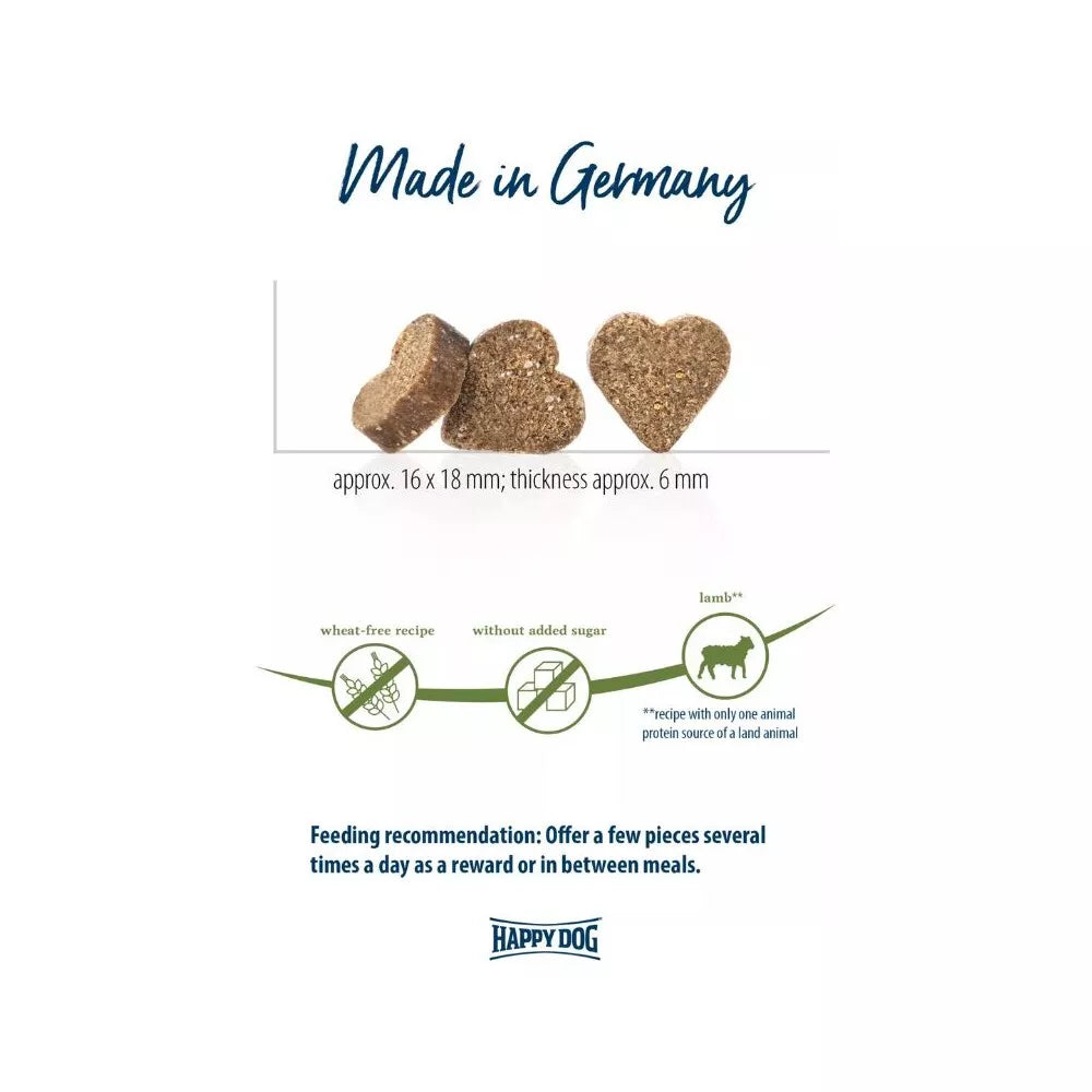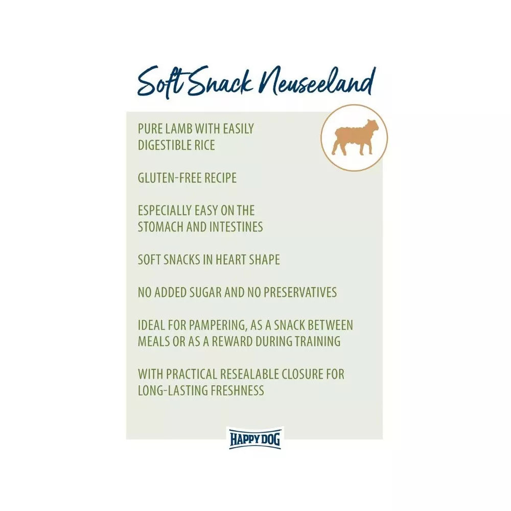Dietary supplement for adult dogs. Soft, gluten-free treats with lamb. The soft, heart-shaped "Neuseeland" treats are perfect for spoiling your...