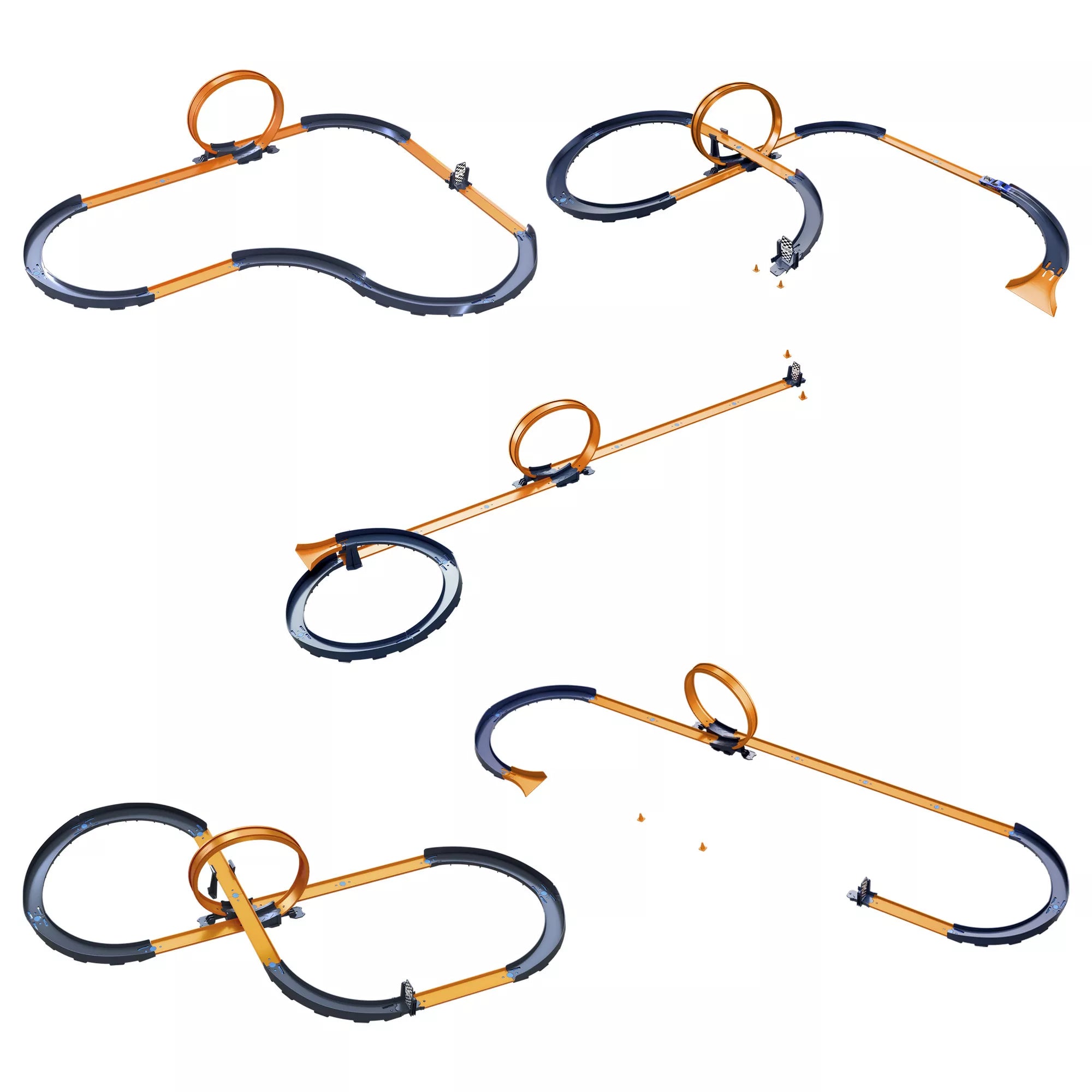 - The track included in the set consists of over 30 pieces that can be connected in four different configurations for endless adventure and action.