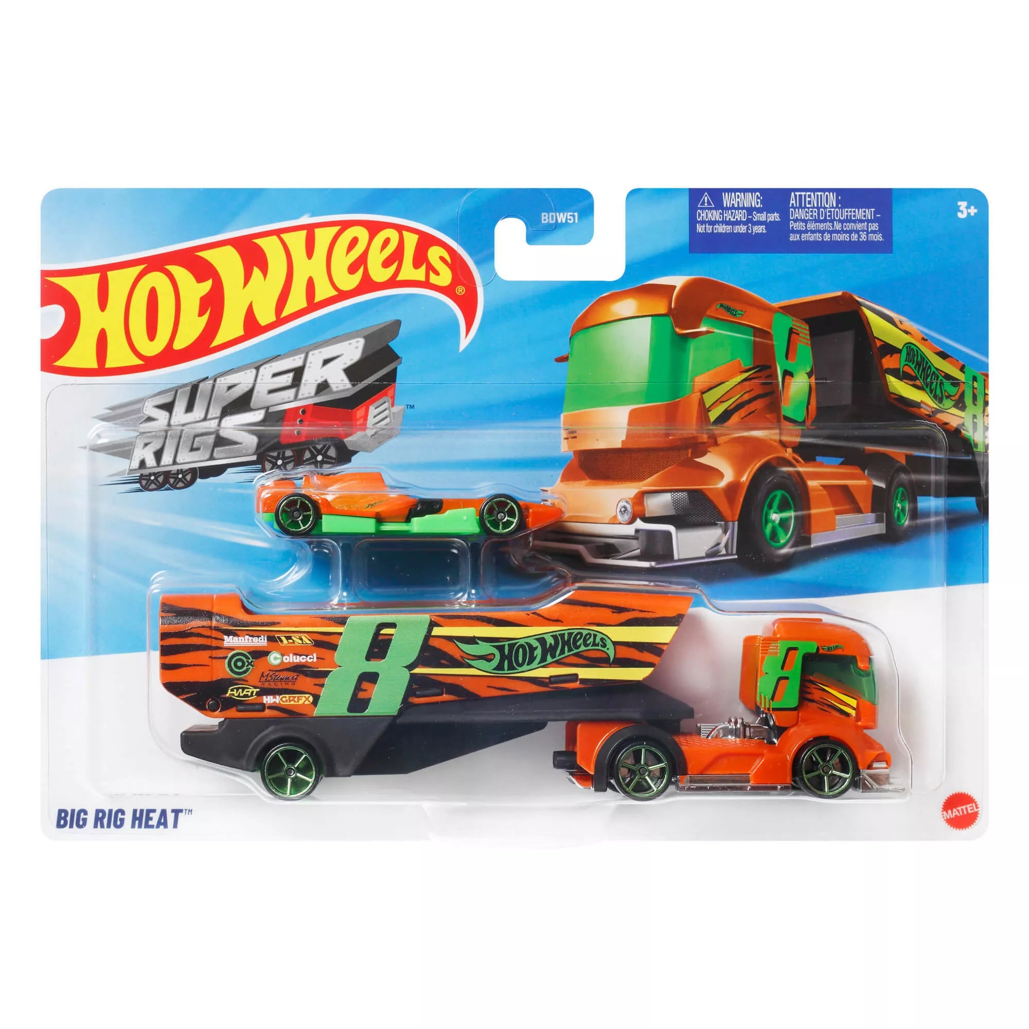 These awesome transporters are ready for race day! The vehicles speed wildly on both flat roads and downhill slopes, and tackling loops is a breeze! Each transporter features a detachable cabin, trailer, and a car or helicopter. Kids can collect them all, mix, and match in various ways. The assortment includes 10 different models.