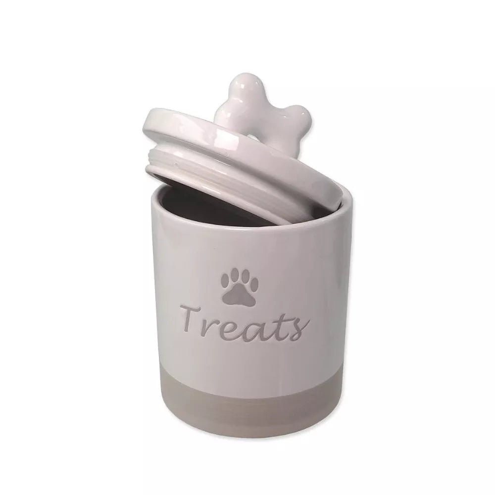 Looking for a stylish and functional container for your pet's treats? This ceramic treat container is an excellent choice that will not only beautify your home but also ensure convenient treat storage.