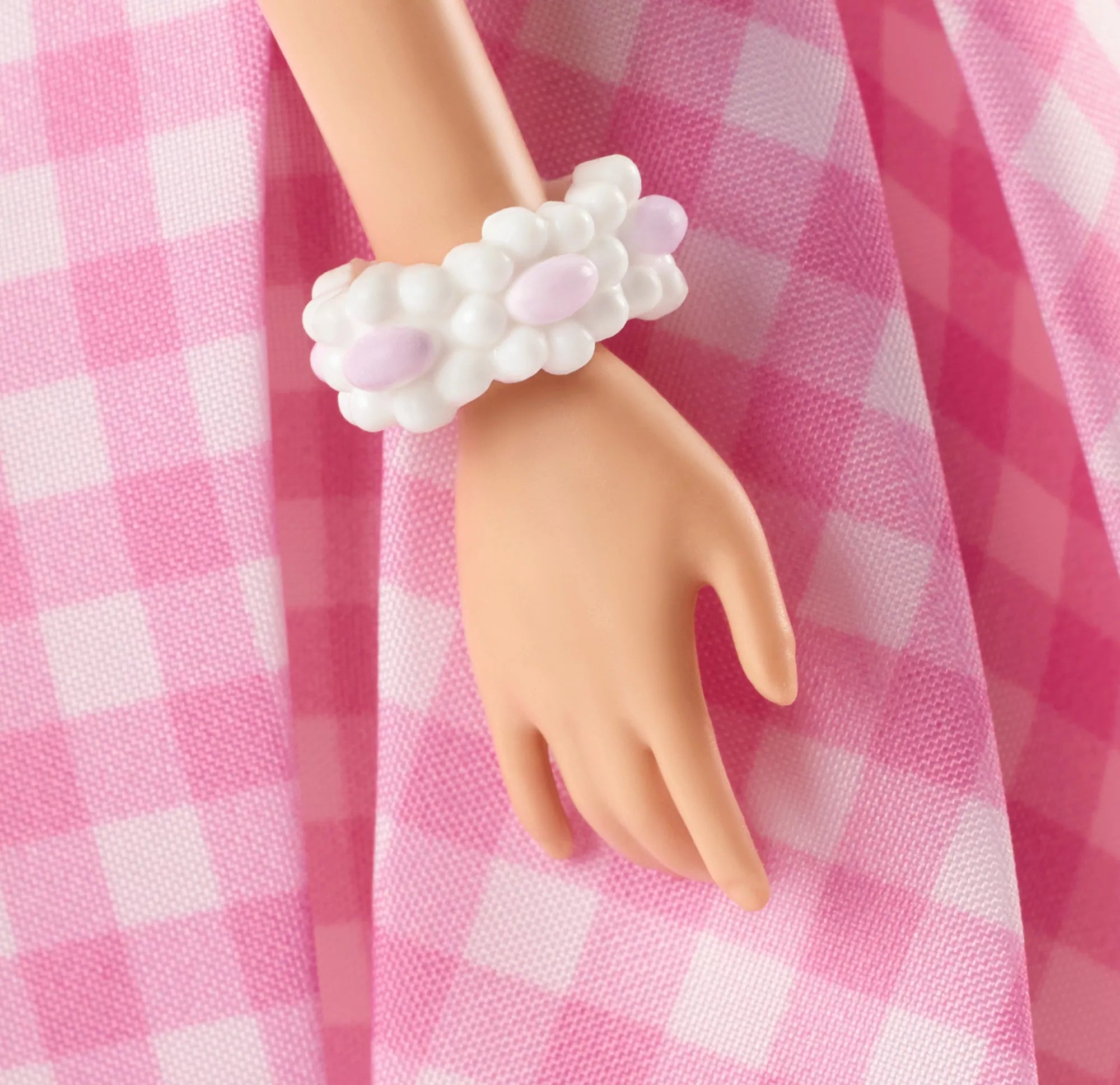· Pink and white checkered dress.