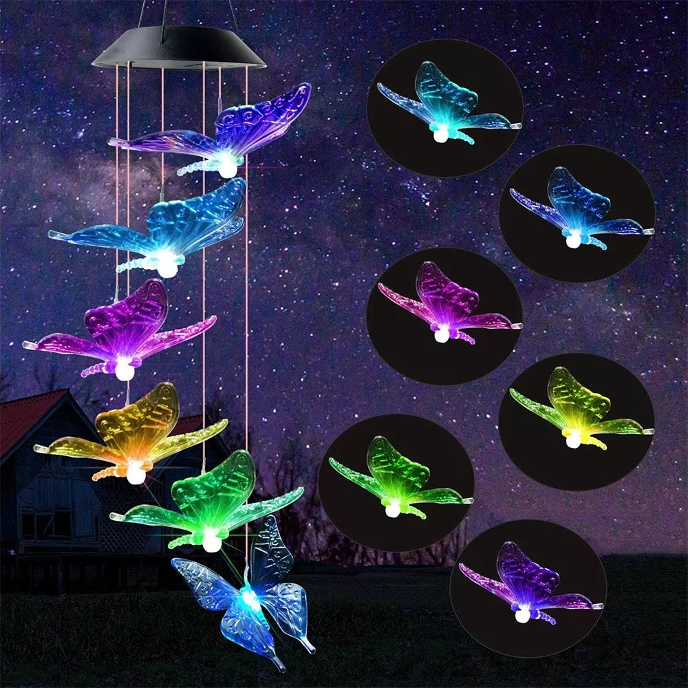 Colorful Design: 6 hanging, color-changing (red, green, blue, purple, etc.) illuminated butterflies.