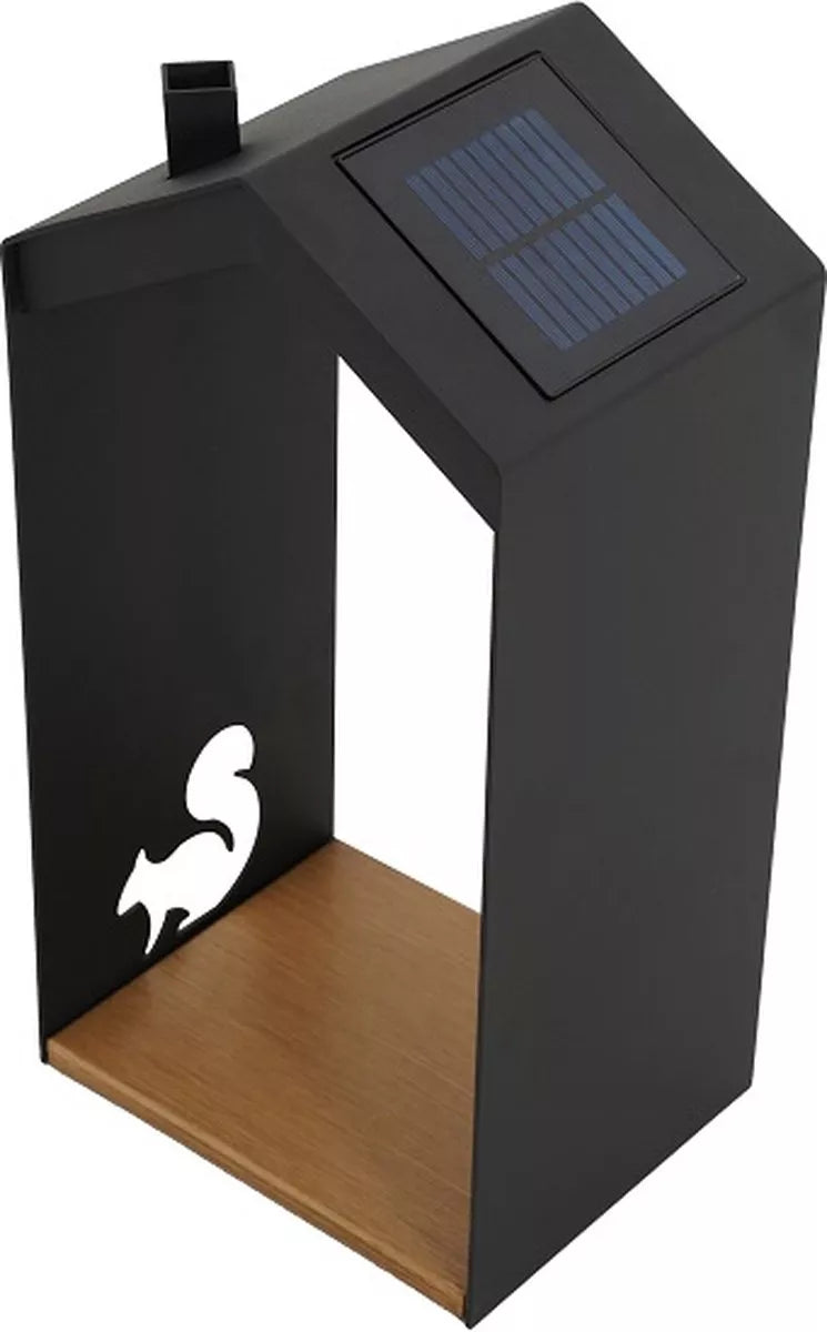 - Solar-powered garden lamp. The lamp is made of aluminum, powder-coated in anthracite, with a teak-colored aluminum base.