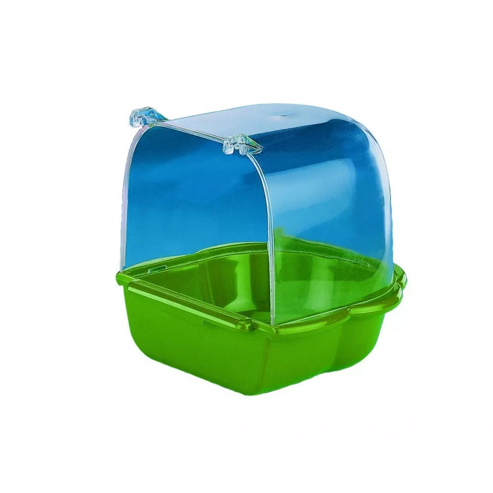 This bird bath is designed for birds to preen their feathers. The plastic bird bath can be attached to cage bars or removed each time the bird takes a bath. The top easily detaches, making it convenient to clean. Manufacturer: "Nobby Pet Shop GmbH", Germany