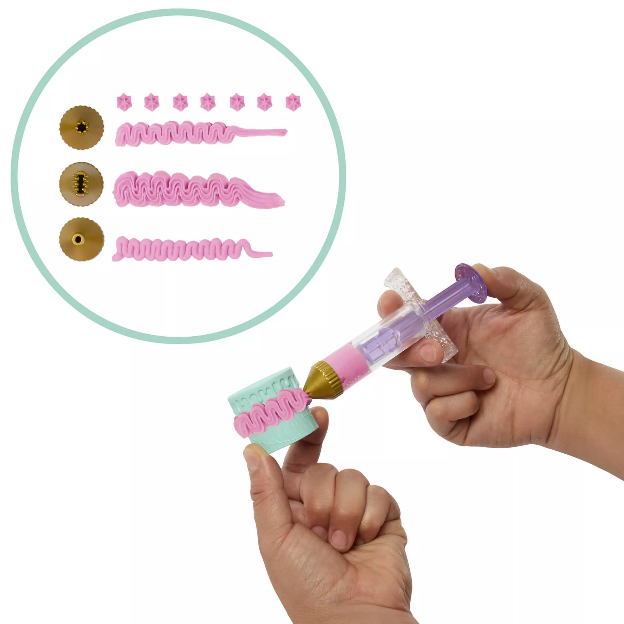 • In the set you will find: 6 cakes, 6 cupcakes, a tray, a spatula, a rolling pin, a pipette, tweezers, 10 decorative ornaments, 2 molds for frosting.