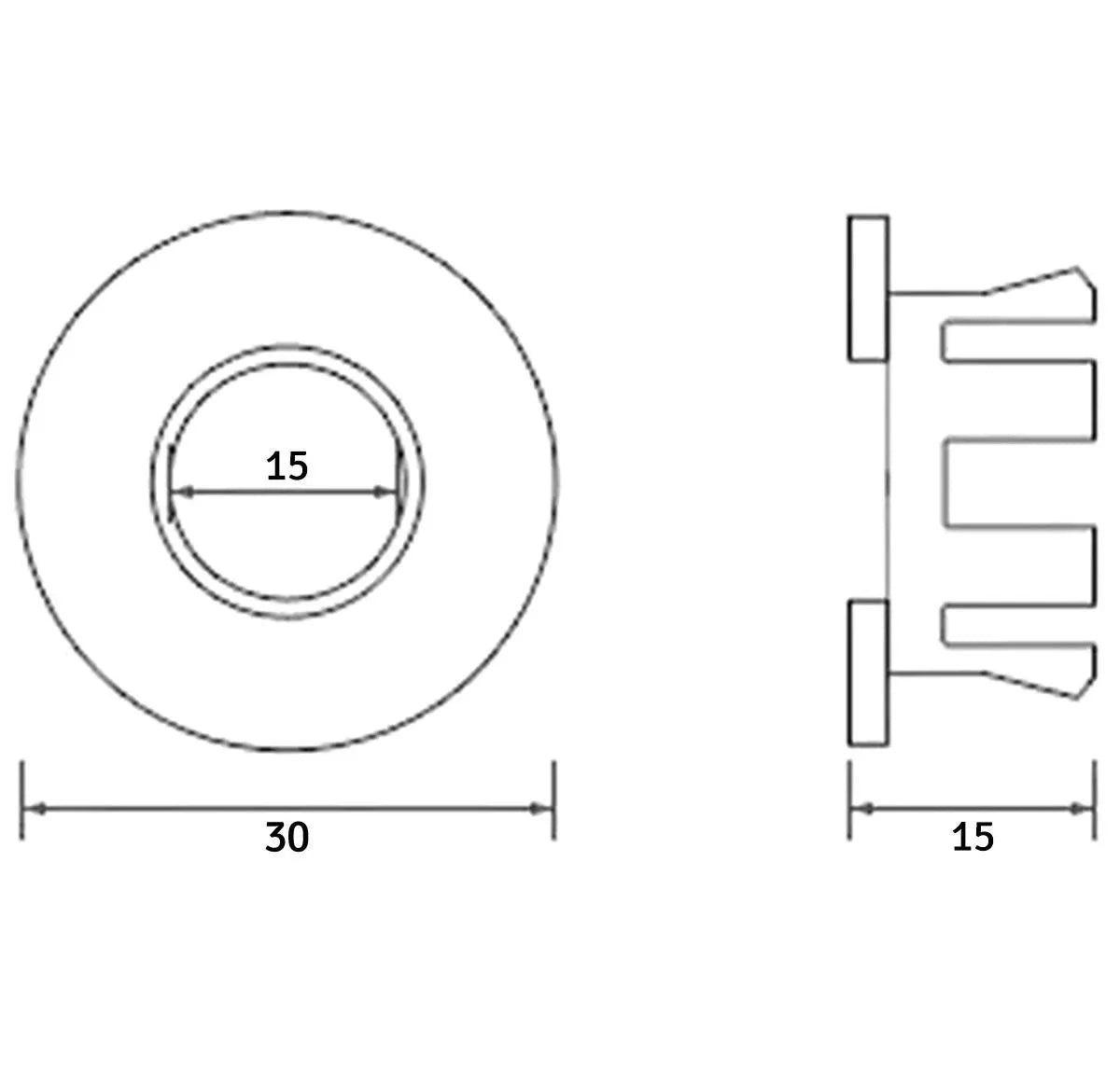 Silver-colored sink overflow cover. The round shape neatly conceals the hole in the upper part of the sink. Simple and non-invasive installation.Product features:Material: brass + plasticDiameter (phi): 30 mmHole diameter: 15 mmDepth: 15 mmSilver coloredPlastic packaging