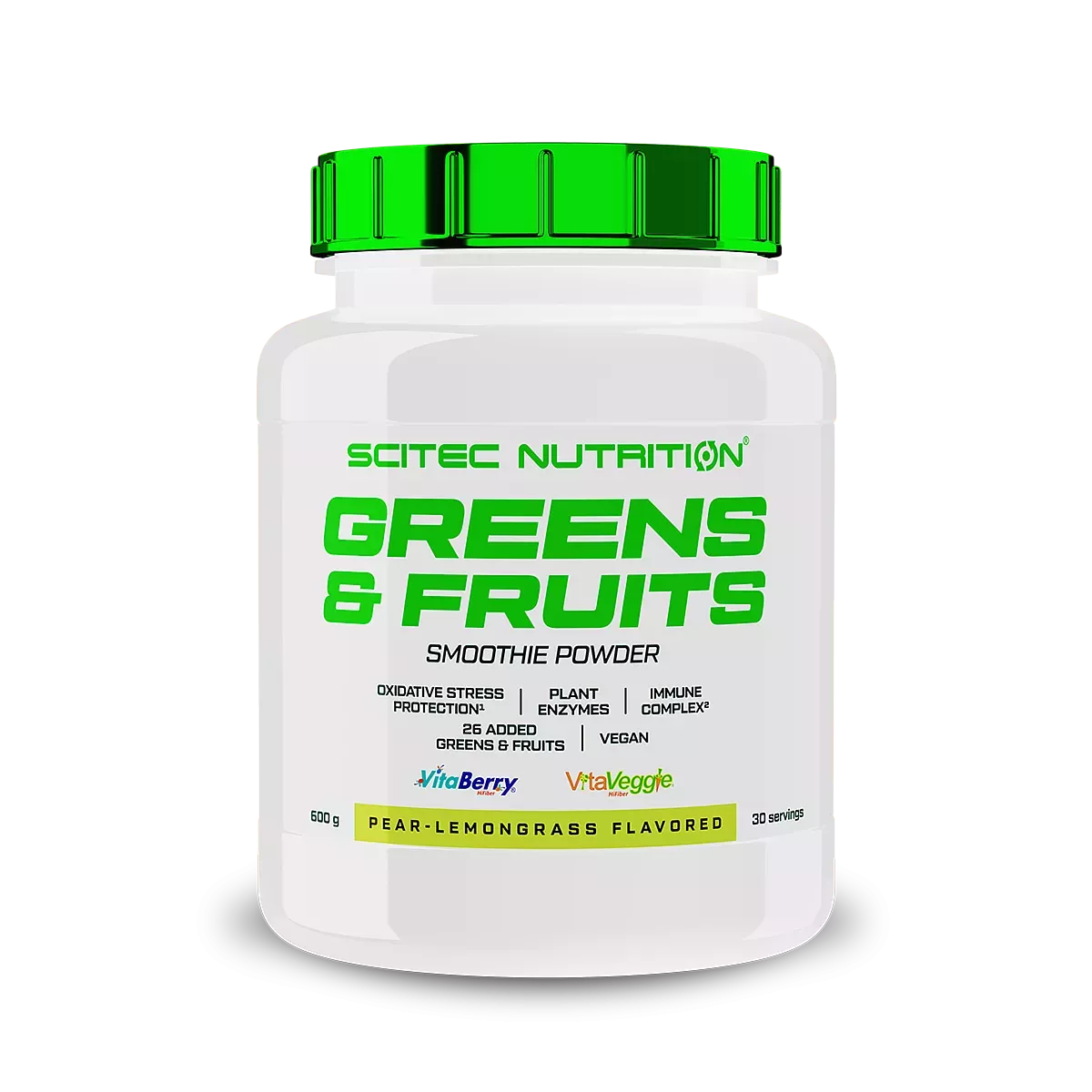 Eating vegetables and fruits is an essential part of a varied diet and a healthy lifestyle. Among their beneficial properties is their taste, which can further enrich our diet. Greens & Fruits is a plant-based smoothie drink powder with a pleasant pear and lemongrass flavor, rich in active ingredients.