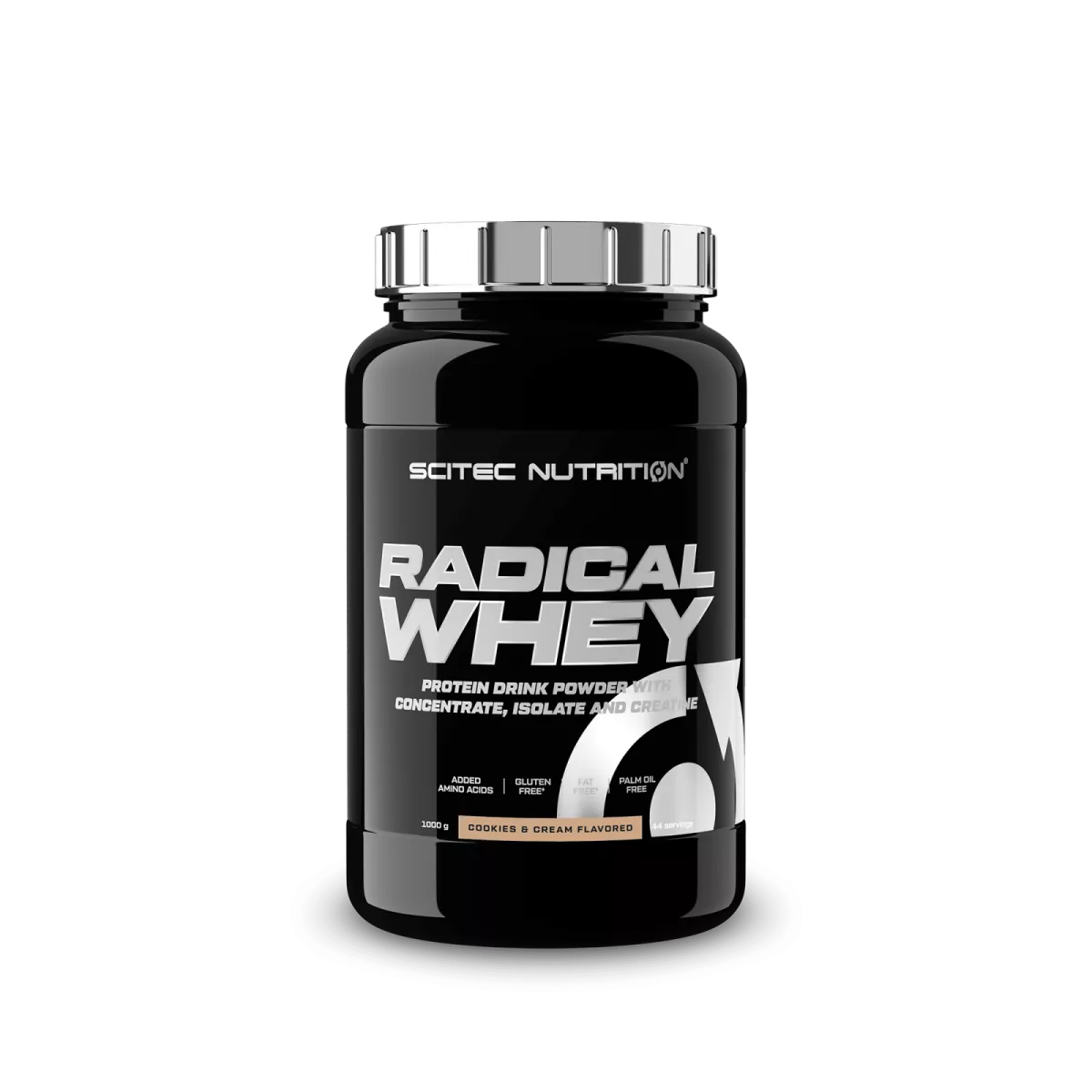 Radical Whey is a Scitec protein powder formula designed for those looking for a complete product to complement their daily routine. A carefully crafted blend of whey protein, creatine, and essential amino acids.