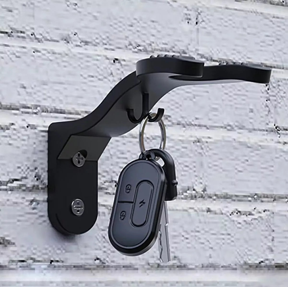 Additional hook at the bottom of the mount allows for hanging extra accessories (e.g., keys).