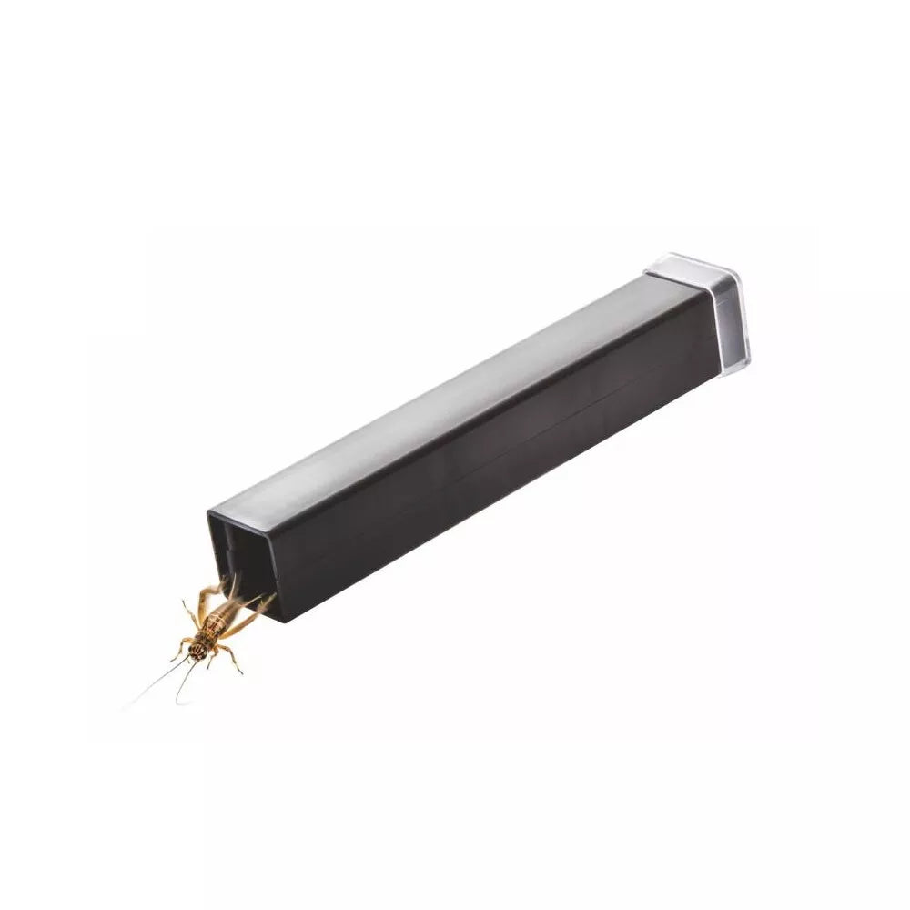 Dispensing Crickets: Slowly slide the cricket tube out of the container and cover the open end of the tube with your hand. The container opening has self-closing doors. Then, transfer the crickets into the terrarium. Open the opening and gently tap the tube to release the desired number of crickets into the terrarium. Always pull out only the tubes to prevent crickets from escaping the container.