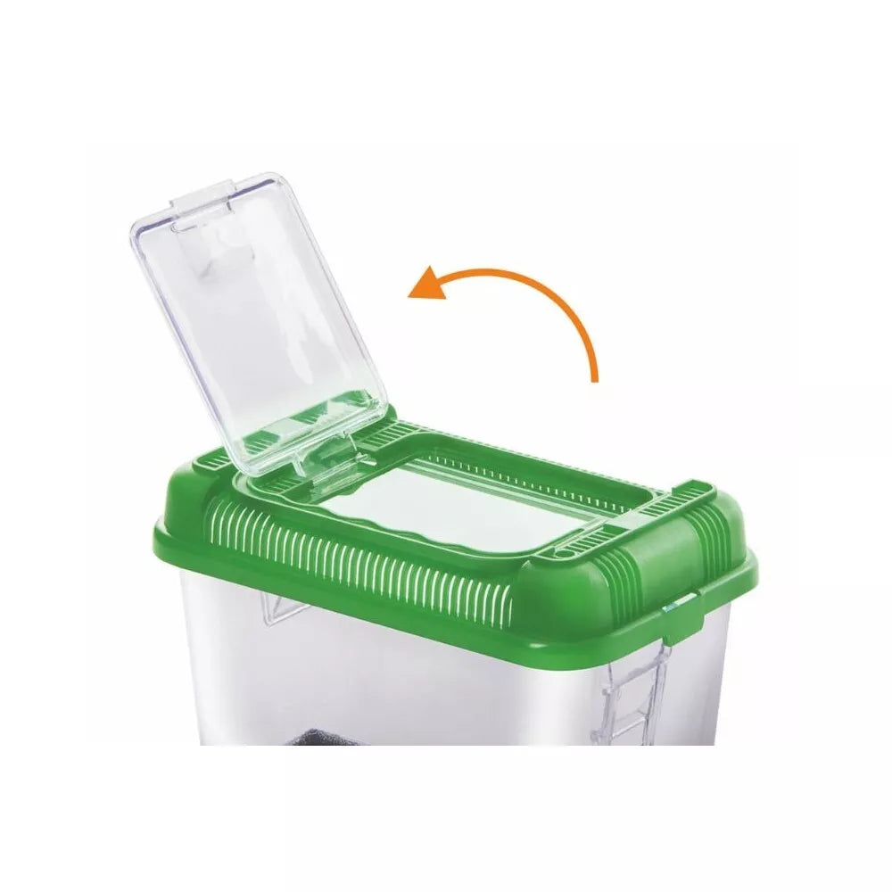 Cricket Terrarium. A complete cricket care kit. Features a removable lid with ventilation holes and a door with a handle...