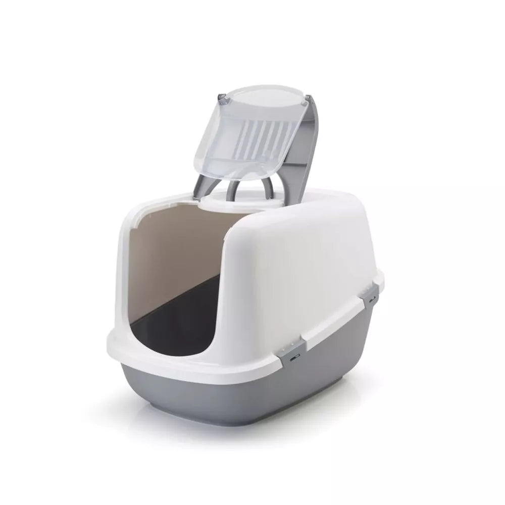 A large and spacious enclosed litter box, perfect for large breed cats. Includes a filter that neutralizes unpleasant odors. Cleaning is very convenient as the part with the door lifts up. Easy to carry thanks to the integrated handle. Dimensions: 66.5x49x46.5 cm. Product photos are for illustrative purposes. The product description is general and may not mention all features. Information on the product packaging is more detailed. We recommend referring to the information on the product packaging.