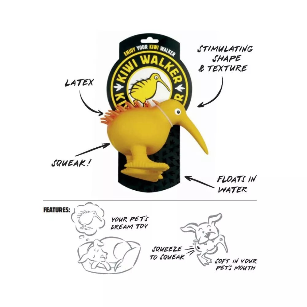 Kiwi Walker latex toys are durable, yet easy to clean. When squeezed, they squeak. This will keep your dog or puppy entertained for hours and help minimize chewing on your furniture or favorite pair of shoes. Product images are for illustrative purposes only. The product description is general in nature and not all features may be mentioned. Information on the product packaging is more detailed. We recommend following the information on the product packaging.