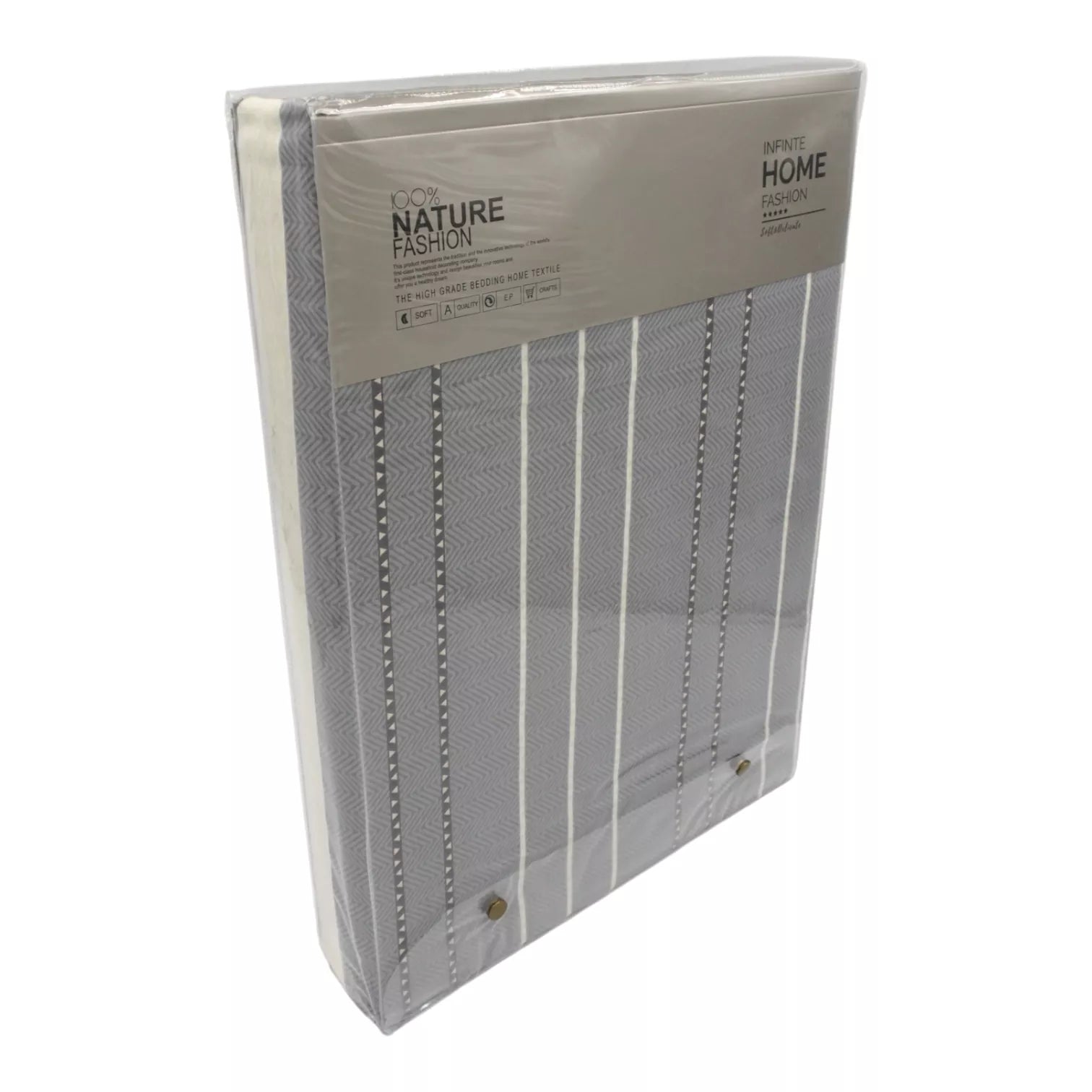 Komplektas stebina savo moderniu, subtiliu dizainu: elegantiškos pilkos spalvos raštai su plonomis linijomis ir minimalistinėmis detalėmis puikiai tinka tiek šiuolaikiškam, tiek klasikiniam interjerui. Medžiaga minkšta, maloni, tankaus audimo – todėl išlaiko formą ir spalvą net po daugybės skalbimų.
