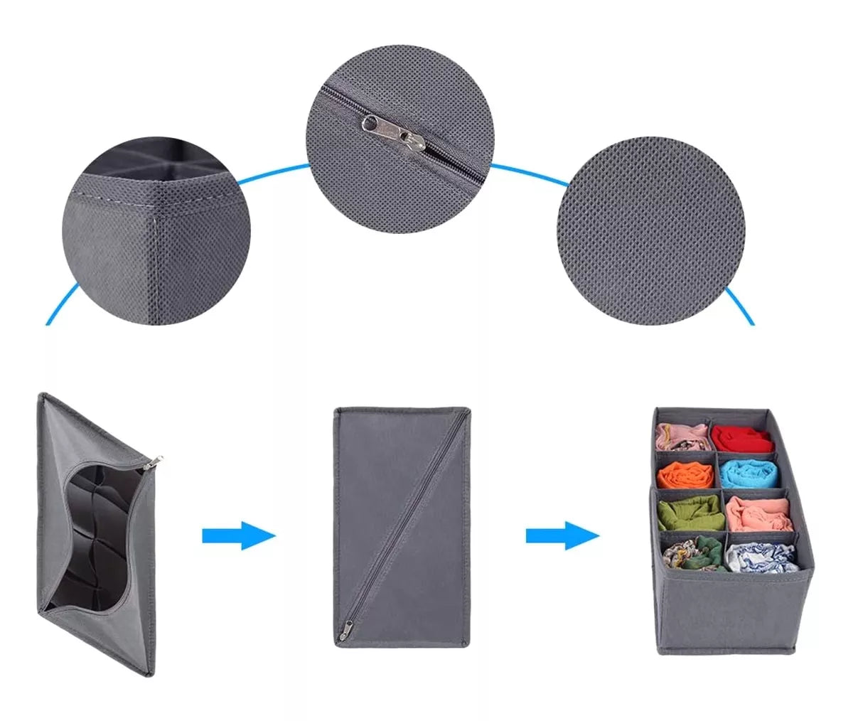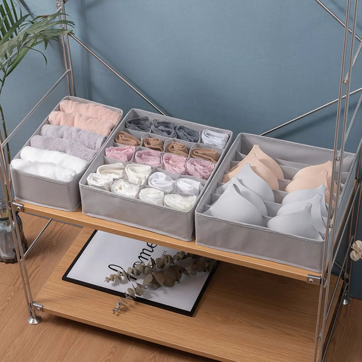 - Nešiojami dėklai leidžia palaikyti tvarkingą apatinio trikotažo stalčius – pagaliau juos atidarę iškart rasite reikalingus drabužius.