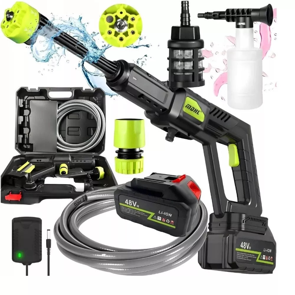Patogus ir galingas aukšto slėgio plovimo įrenginys leis greitai ir efektyviai nuplauti automobilį, motociklą, dviračius, kiemo plyteles ar sodo įrankius. Įrenginys veikia su 48V ličio jonų akumuliatoriumi, todėl nereikia laidų – plauti galite bet kur, net ir vietose, kur nėra elektros ar vandentiekio jungties.