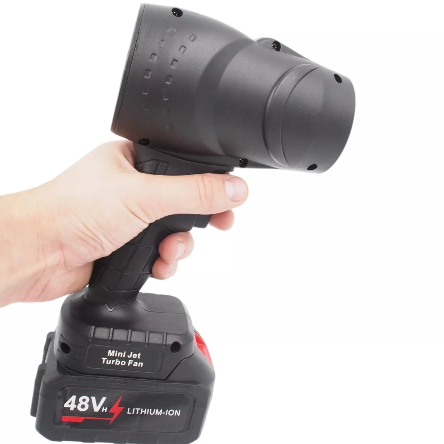 Galingas ir patogus Mini Jet Turbo Fan – tai kompaktiškas belaidis pūtiklis, skirtas įvairiems darbams: dulkių, lapų, pjuvenų, automobilių salono, dirbtuvių ar kitos buitinės bei ūkinės aplinkos valymui. Įrenginys maitinamas 48V ličio jonų baterija, todėl veikia be laidų ir suteikia visišką mobilumą bei patogumą.