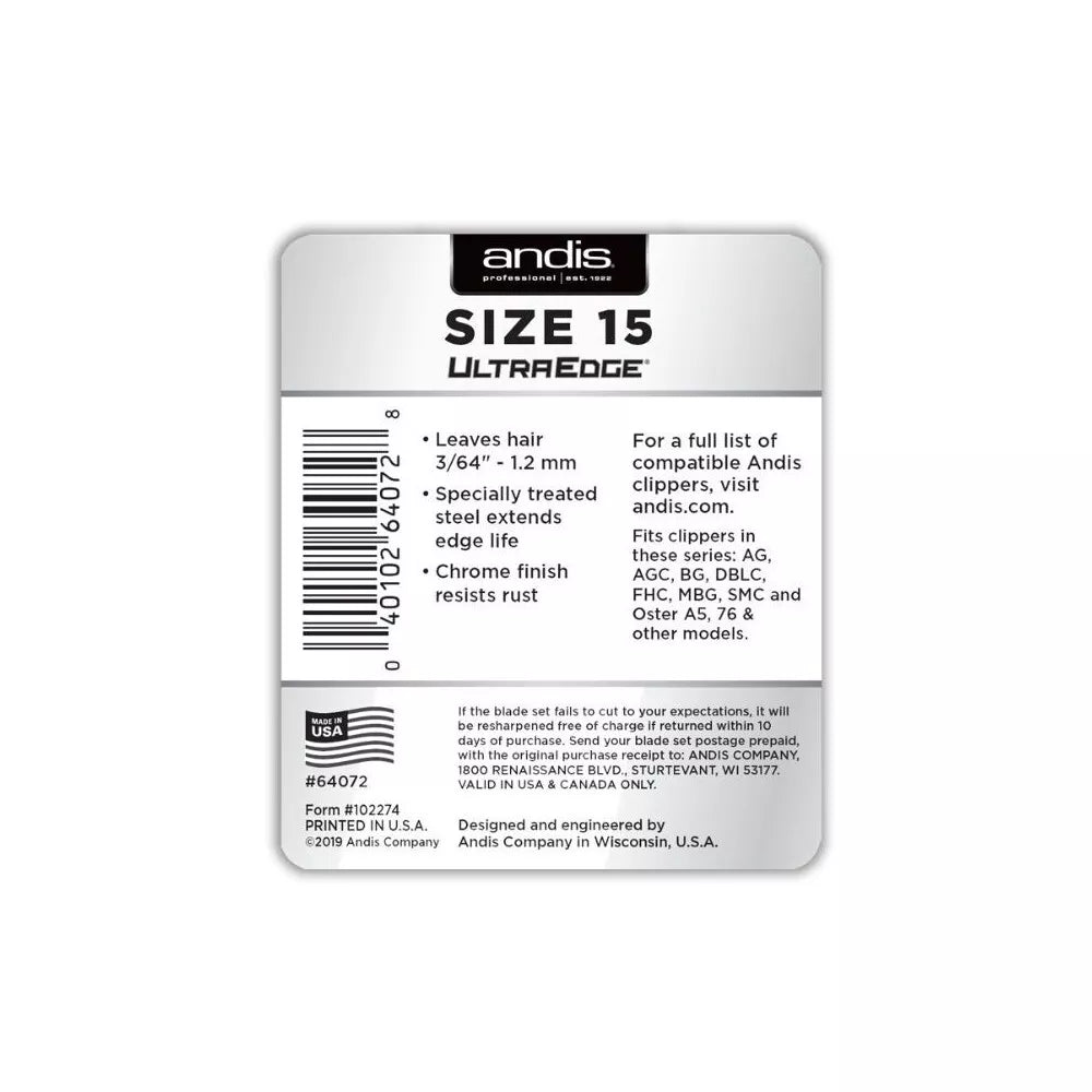 Andis plaukų kirpimo peiliukai UltraEdge Size 15, 3/64" - 1.2 mm