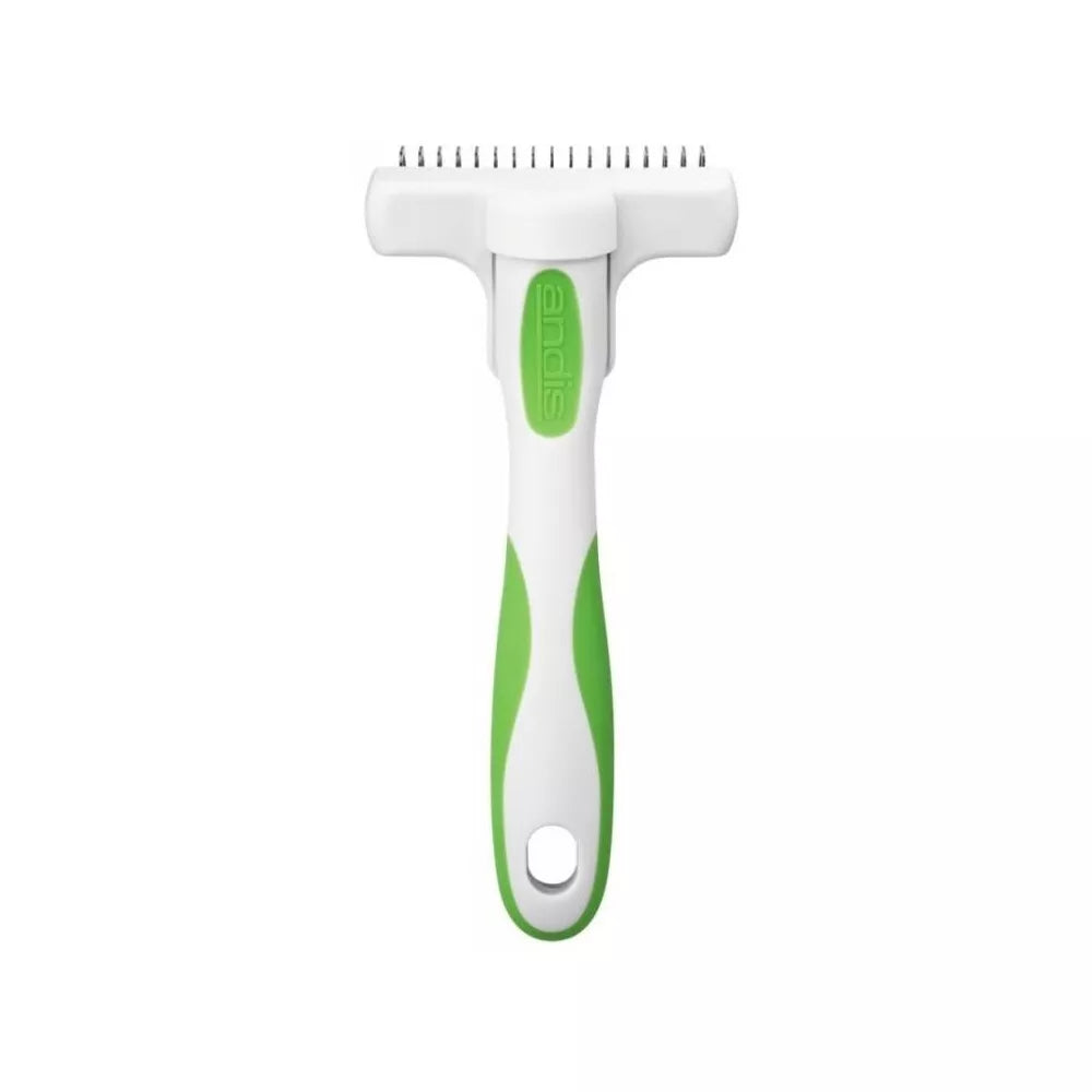 Andis „Desheding Tool“ šepetys gyvūnų kailio trimingavimui padeda pašalinti iškritusiusius augintinių plaukus nepažeisdamas odos ar viršutinio jos sluoksnio. Profesionalų naudojami nerūdijančiojo plieno dantukai sutramdo kailį ir pašalina perteklinį plaukų kiekį, o ergonomiška, neslystanti rankena palengvina naudojimą. Šis aukštos kokybės Andis įrankis ne tik palaiko kailio būklę, bet ir iki 90% sumažina šėrimąsi.
