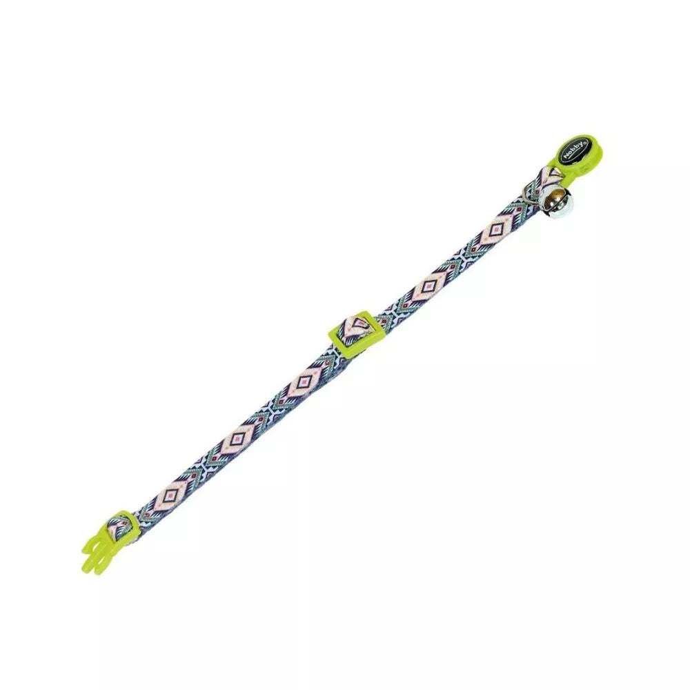 Antkaklis katėms, nailoninis, su varpeliu, leidžiančiu šeimininkui žinoti, kur augintinis yra. Reguliuojamo dydžio, sagtis pagaminta iš tvirto plastiko, itin patogiai ir patikimai užsisega.