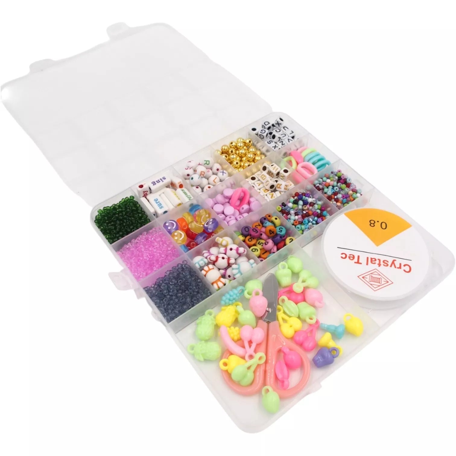 Spalvingas ir kūrybiškas karoliukų rinkinys leis pasigaminti unikalius papuošalus – apyrankes, vėrinius ar pakabukus. Įvairių formų bei spalvų karoliukai suteikia galimybę derinti skirtingus stilius ir kurti išskirtinius aksesuarus. Rinkinys supakuotas patogioje plastikinėje dėžutėje su skyreliais, todėl visi elementai išlieka tvarkingai sudėti.