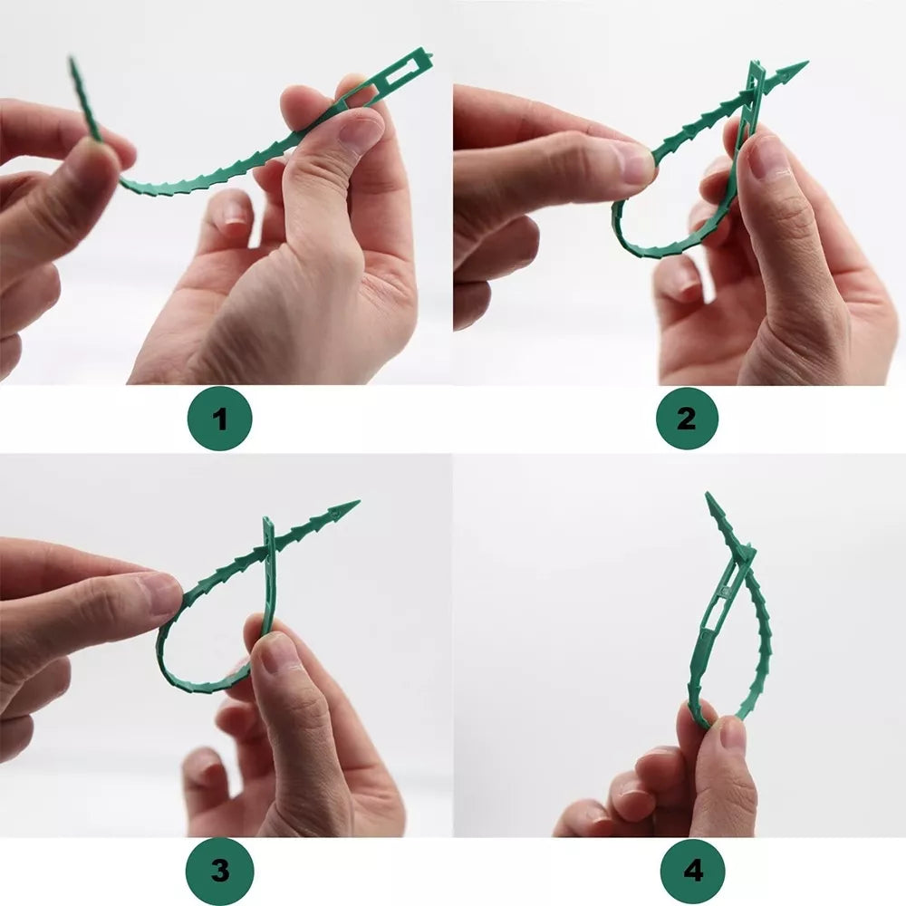 Praktiški ir patogūs plastikiniai dirželiai skirti augalų tvirtinimui prie atramų, grotelių ar kuoliukų. Jie padeda išlaikyti augalus taisyklingoje padėtyje, apsaugo nuo lūžimo ir leidžia jiems augti stabiliai bei tvarkingai. Puikiai tinka pomidorams, agurkams, gėlėms, vijokliams ir kitiems sodo augalams.