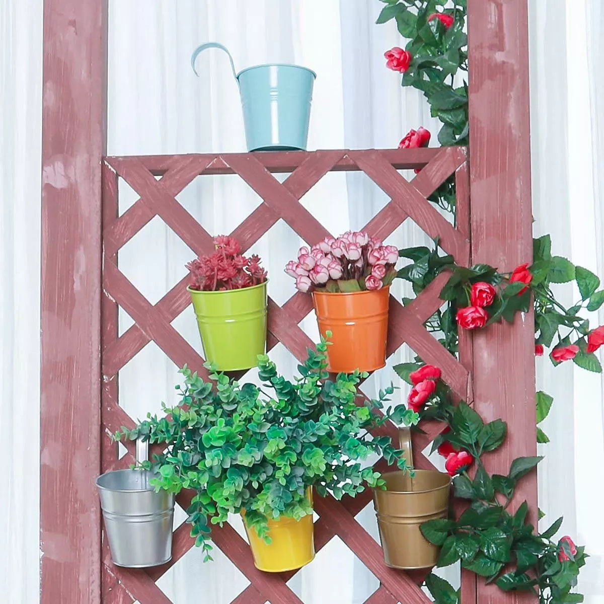 Itin praktiškas balkono vazonėlis. Pagaminta iš vientiso, milteliniu būdu dengto cinkuoto plieno, kuris apsaugo juos nuo korozijos ir UV spindulių. Praktiška rankena leidžia patogiai pakabinti.