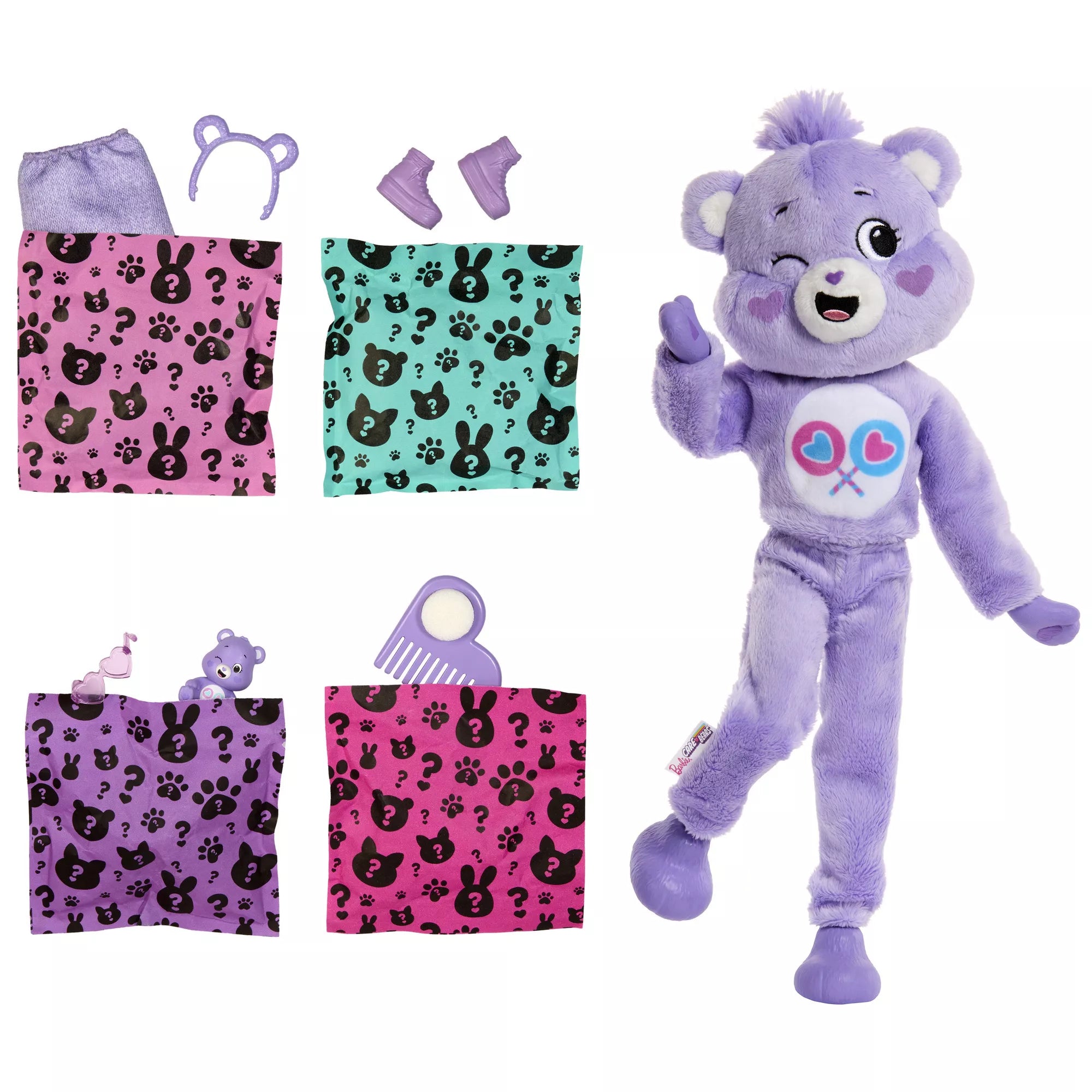 „Barbie Cutie Reveal Care Bears“ minkštutėlis it debesėlis lėlės ir jos mažojo draugo staigmenų rinkinys.