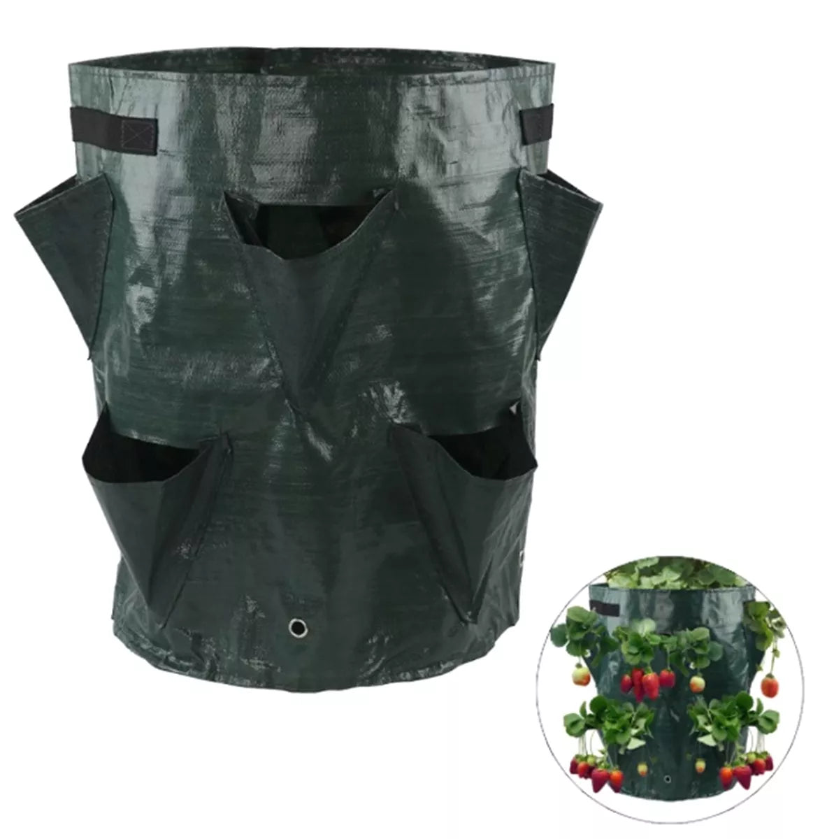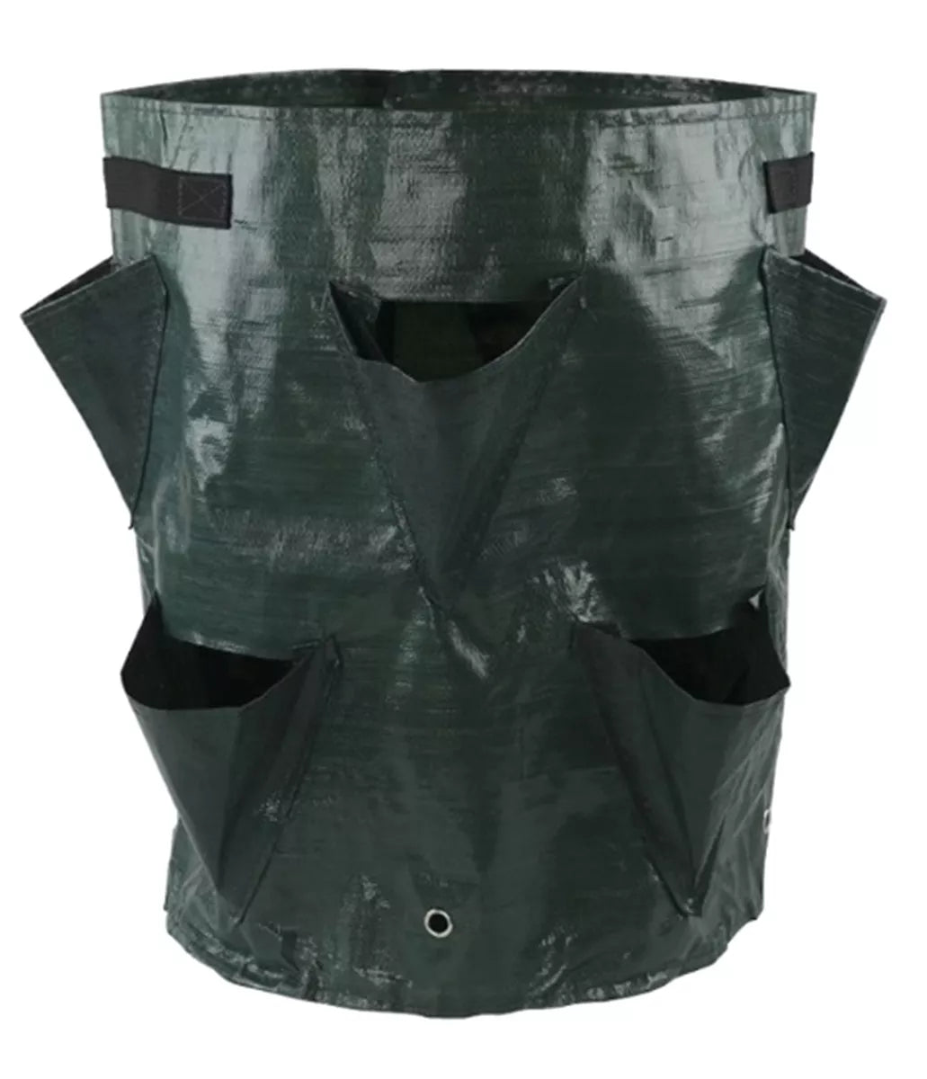 Maišas braškėms ir kitiems vaiskrūmiams sodinti.Jame yra 10 šoninių skylių, kurios leidžia krūmams nuolat augti.Puikiai tinka namų sąlygoms.Pagaminta iš stipraus polietileno, atsparaus drėgmei ir UV spinduliams.Maišo pagrinde yra įmontuotos drenažo angos.Medžiagą lengva valyti, pakartotinai naudoti.Specifikacija: