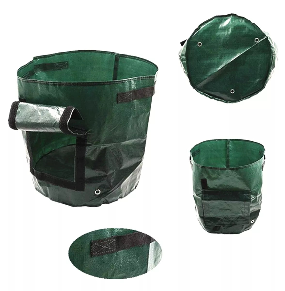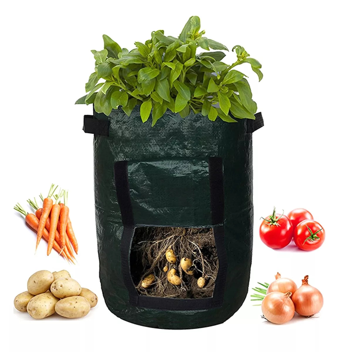 Bulvių sodinimo maišelis. Puikiai tinka auginti visas šaknines daržoves namuose. Pagamintas iš stipraus polietileno, laminuotas iš abiejų pusių ir atsparus UV spinduliams ir drėgmei. Sustiprintos drenažo angos, įmontuotos į maišelio pagrindą. Medžiaga yra plaunama ir gali būti naudojama daugelį sezonų.