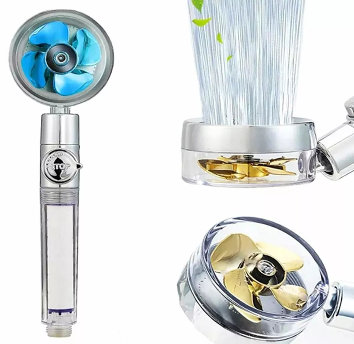 - Integruotas ventiliatorius (turbina), padidinantis dušo galią nedidinant vandens sąnaudų.