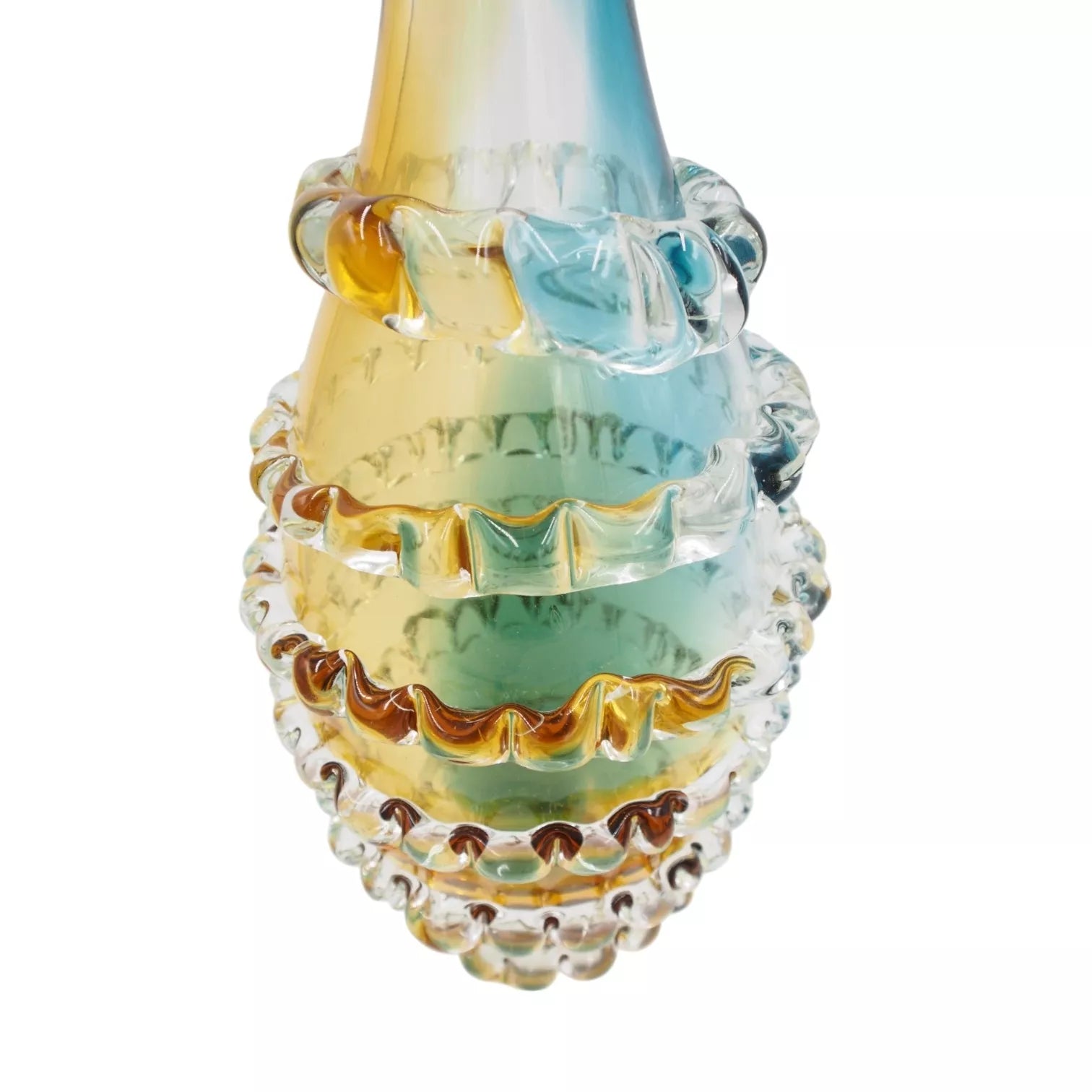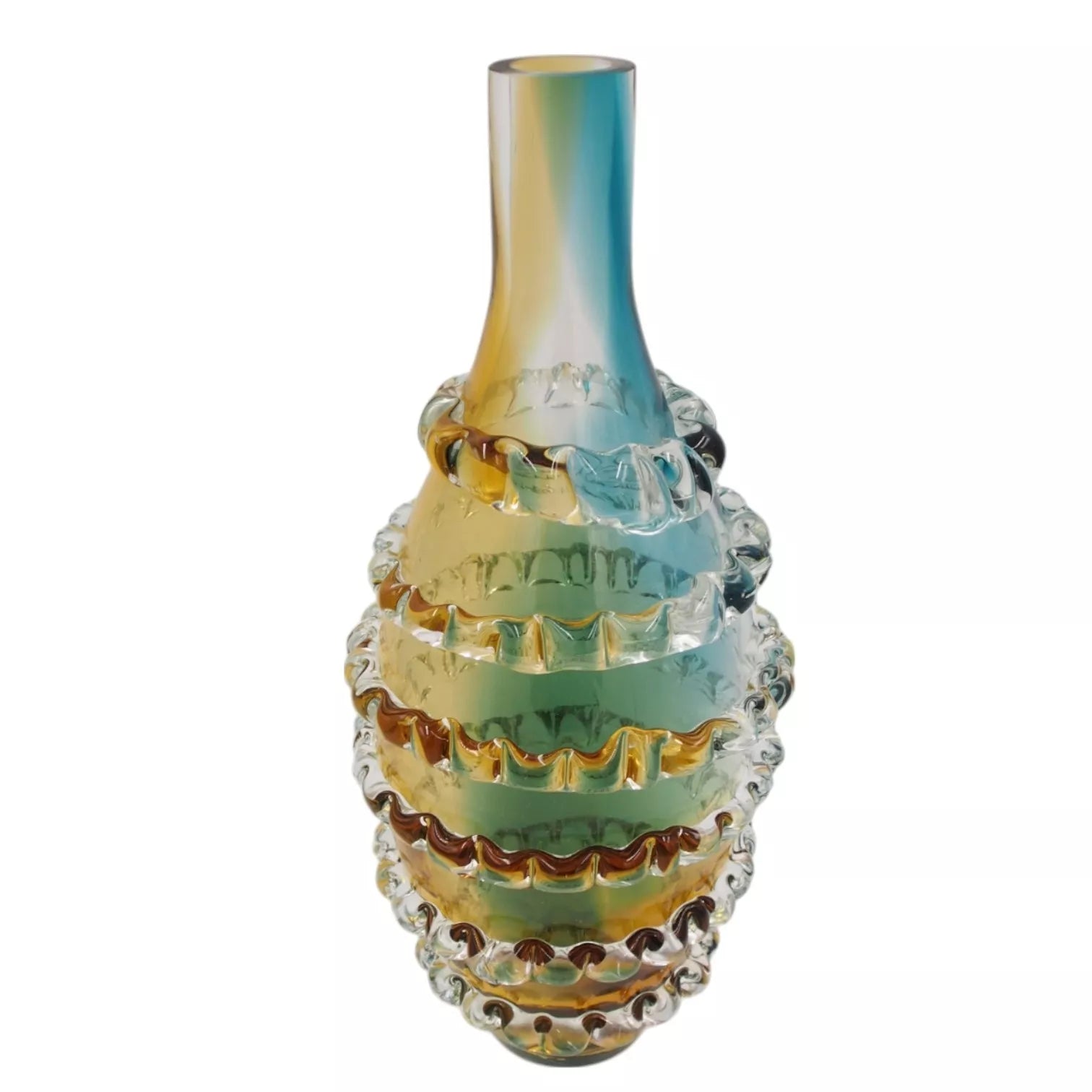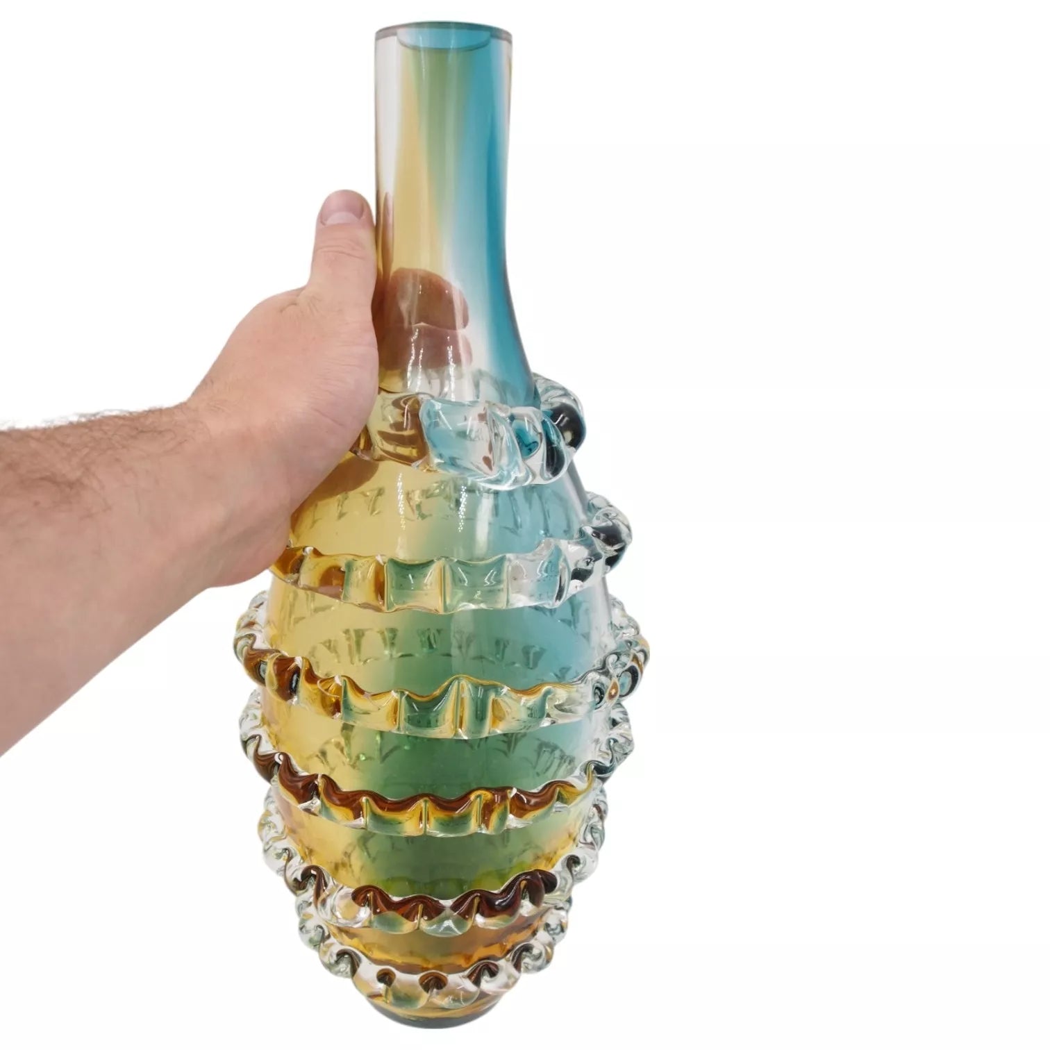 Išskirtinio dizaino dekoratyvinė stiklo vaza – akcentas, kuris suteiks jūsų interjerui žavesio ir elegancijos. Daili aukšta forma bei spalvų žaismas sukuria įspūdingą vizualinį efektą, o unikalūs tekstūriniai elementai primena meno kūrinį. Puikiai tinka tiek šviežioms gėlėms, tiek kaip stilingas akcentas be jų.