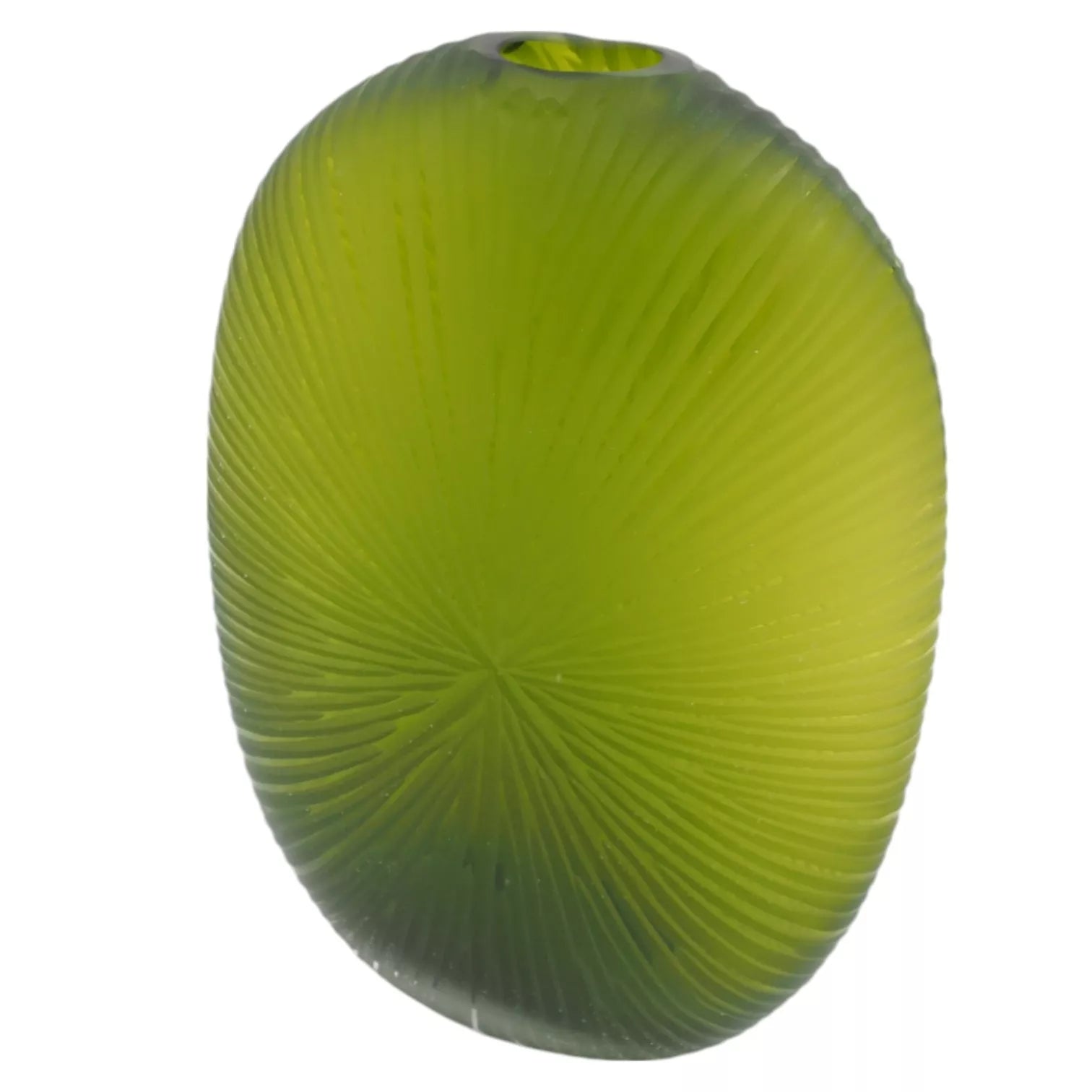 Įneškite gyvybingumo į savo namų interjerą su išskirtinio dizaino žalia dekoratyvine stiklo vaza. Ovalo formos su ryškia tekstūra ir šviesą gaudančiu paviršiumi, ši vaza išsiskiria savo moderniu stiliumi ir šviežiu atspalviu. Puikiai tinka tiek gėlėms, tiek kaip savarankiška dekoro detalė ant lentynos ar stalo.