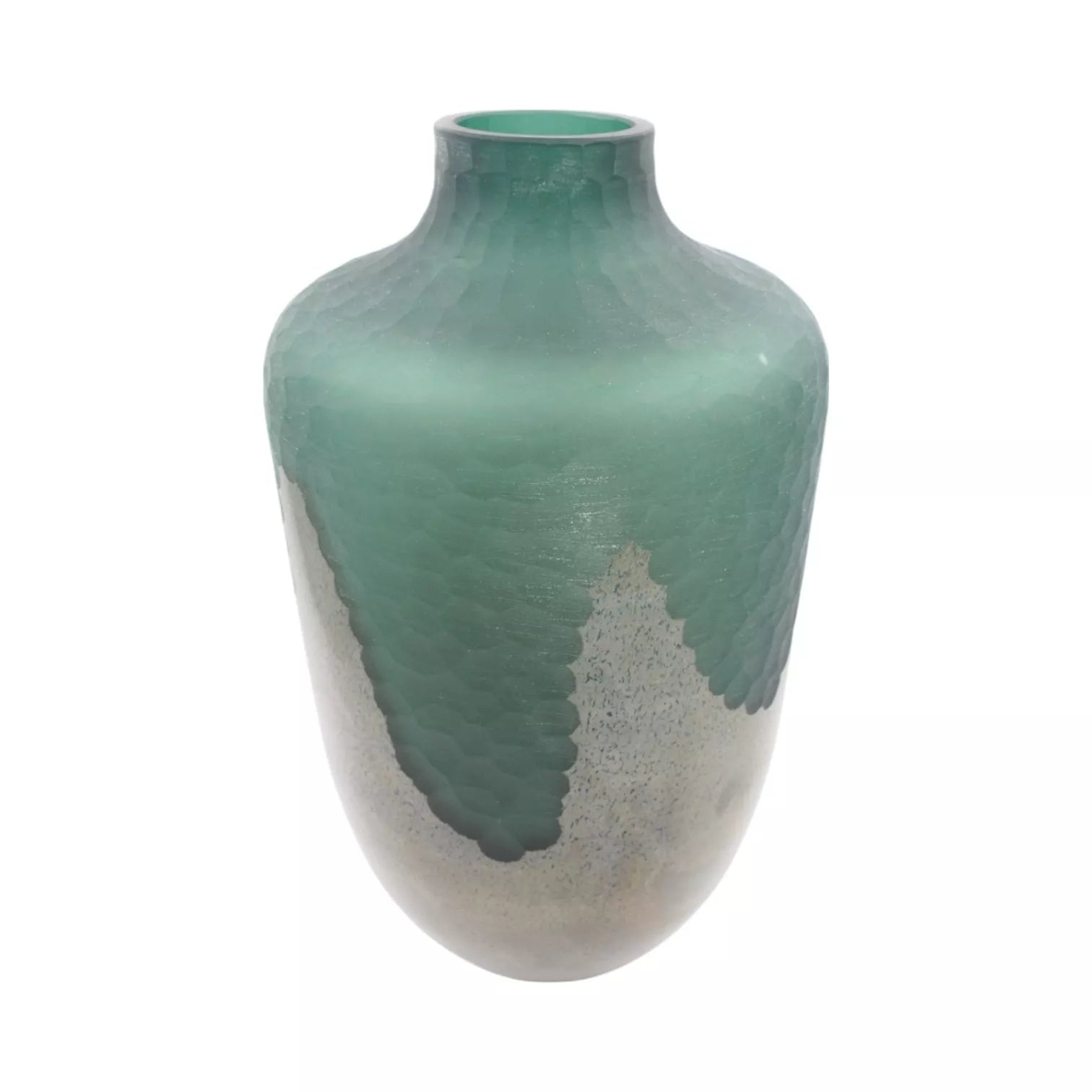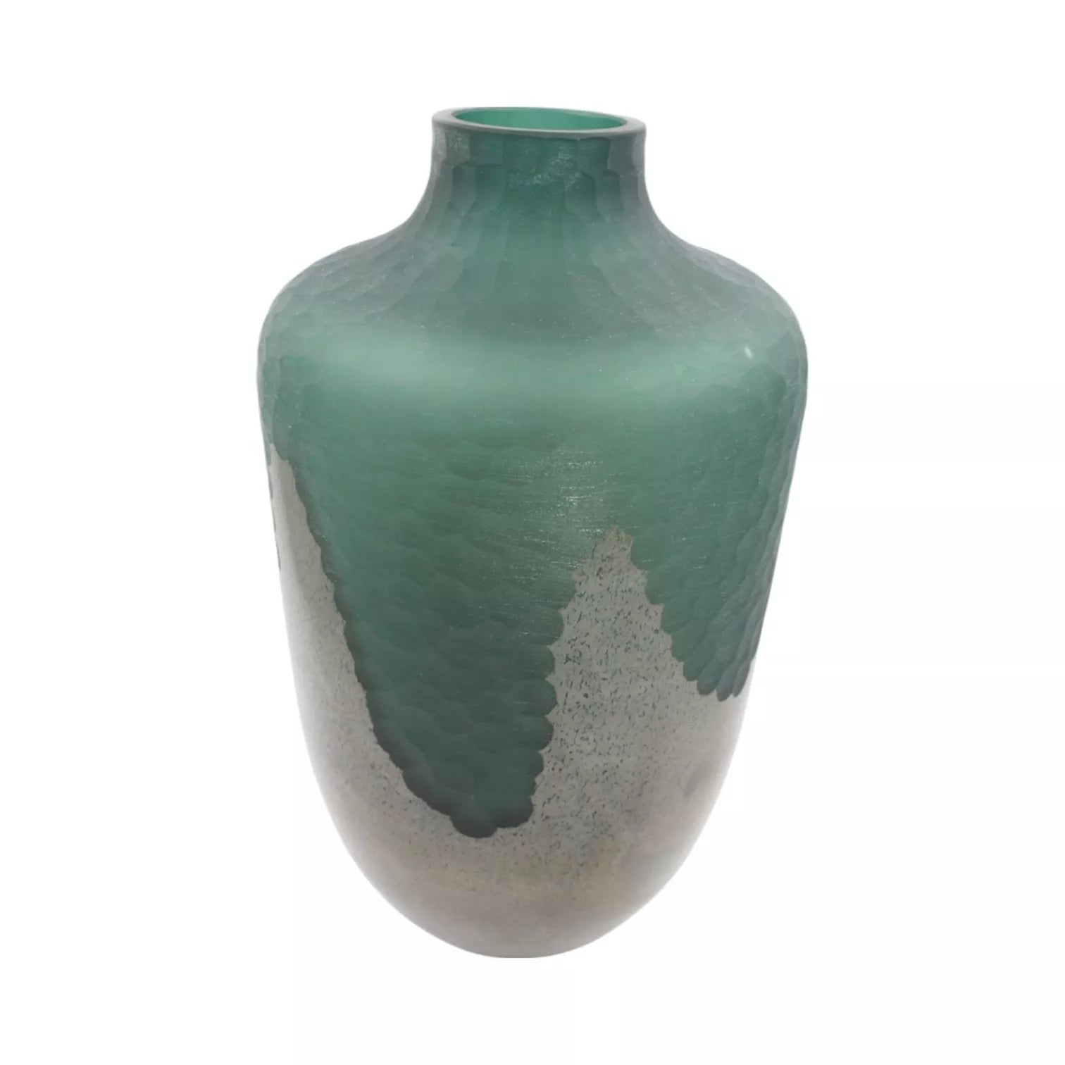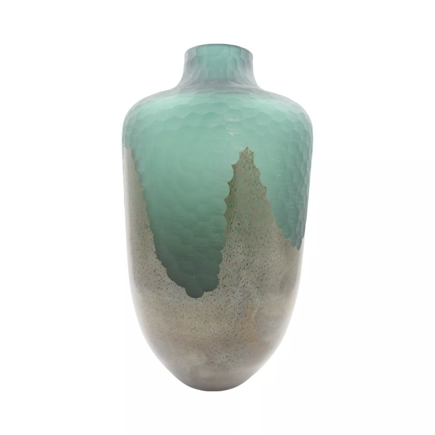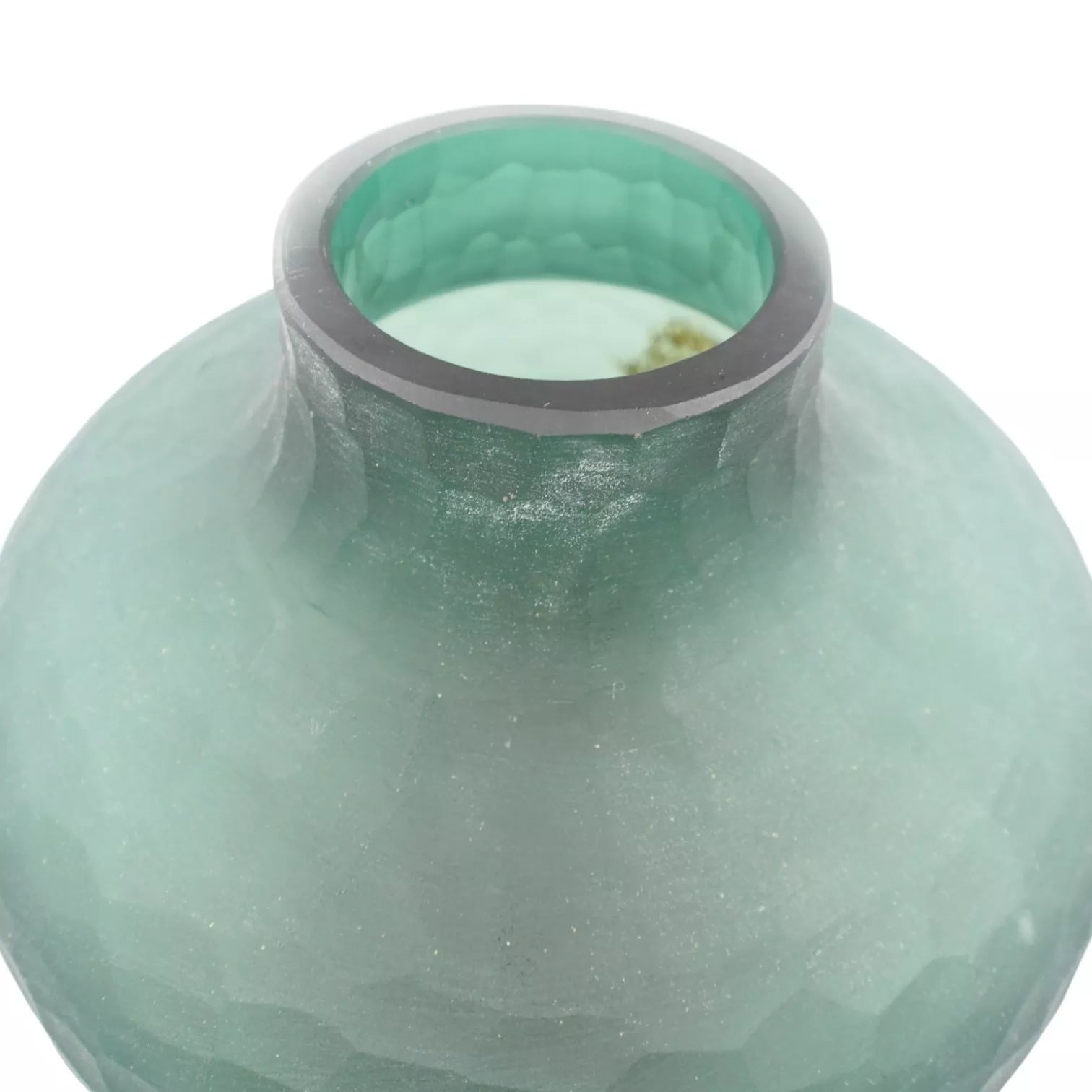 Išskirtinio dizaino dekoratyvinė stiklo vaza su žalsvai mėlynos ir tamsios bronzos spalvų deriniu puikiai papildys modernų ar industrinį interjerą. Glotnus paviršius su tekstūrinėmis detalėmis pabrėžia formos gilumą ir eleganciją. Idealiai tinka tiek šviežioms, tiek dirbtinėms gėlėms, bet ir kaip išraiškingas interjero akcentas.