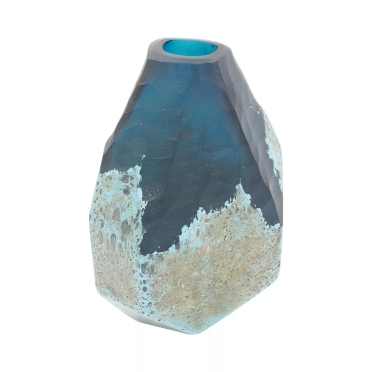 Moderni dekoratyvinė vaza išskirtinio dizaino – subtiliai matinio stiklo paviršius puošia kontrastinga tamsesnio tono spalvinė banga. Ši vaza puikiai tinka ne tik gėlėms, bet ir kaip išskirtinis interjero akcentas. Tvirta konstrukcija ir elegantiška forma užtikrina, kad ji atrodys stilingai bet kuriame kambaryje.