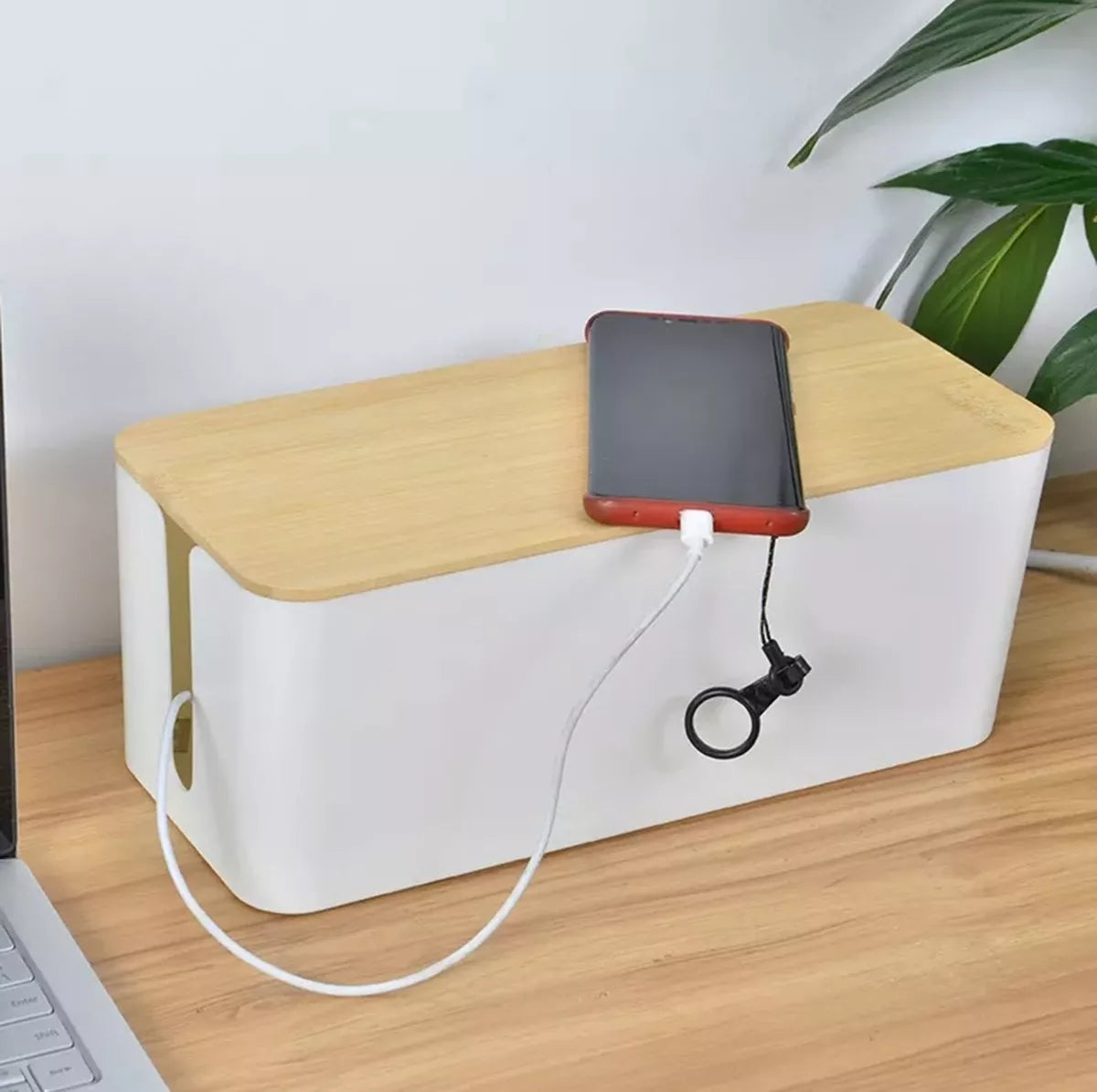 Itin naudingas sprendimas tvarkai palaikyti – leidžia paslėpti laidus ir ilgintuvus bei apsaugoti juos nuo vaikų. Užtikrina saugumą, estetiką ir švarą po stalu ar už baldų. Dėžė turi sandariai uždaromą dangtį ir dvi šonines angas laidų išvedimui. Dailus dangtelis imituoja medienos tekstūrą.