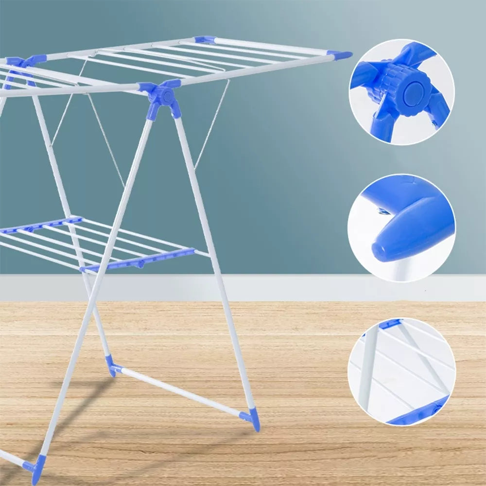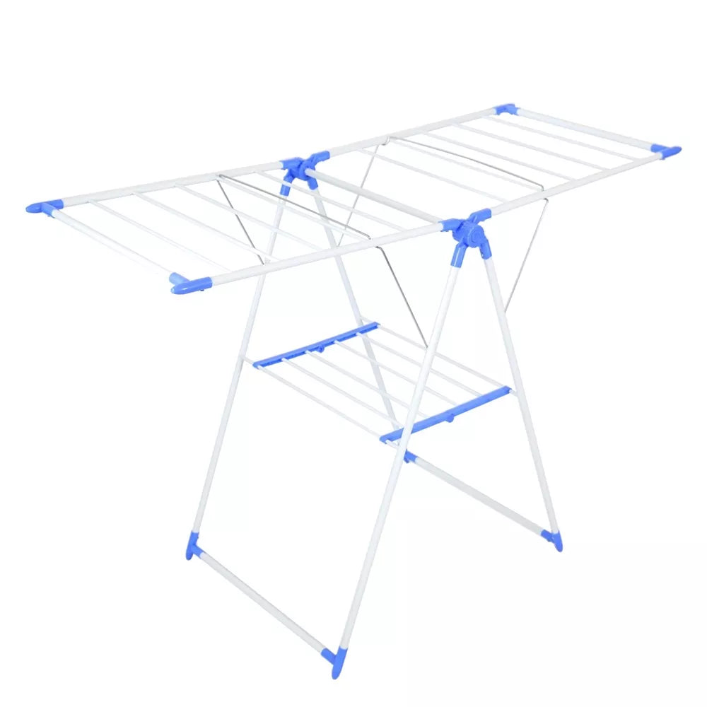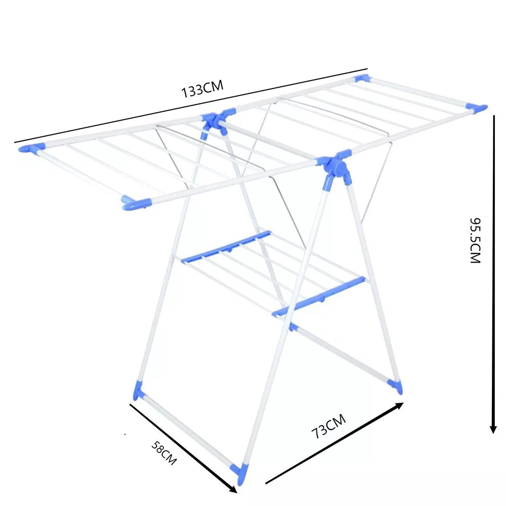 Optimalus dydis – dviejų aukštų konstrukcija puikiai tinka mažesniam skalbinių kiekiui.Kompaktiškumas – lengvai sulankstoma, užima mažai vietos, kai nenaudojama.Išmatavimai: 133*58*95.5 cm.Spalva: balta su mėlynais elementai.Paprasta ir patogi džiovyklė, skirta sutaupyti vietą ir užtikrinti tvarkingą skalbinių džiovinimą!
