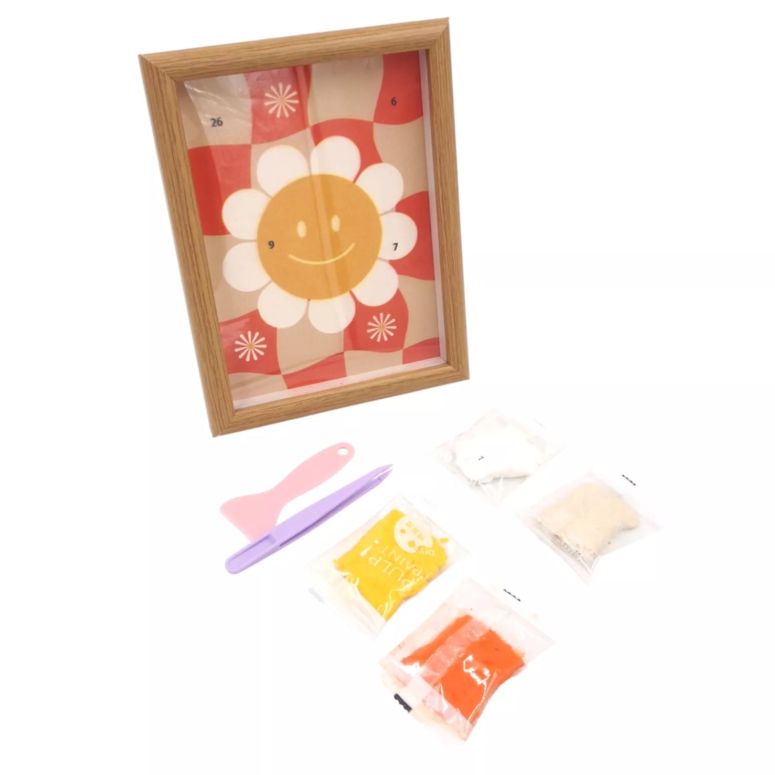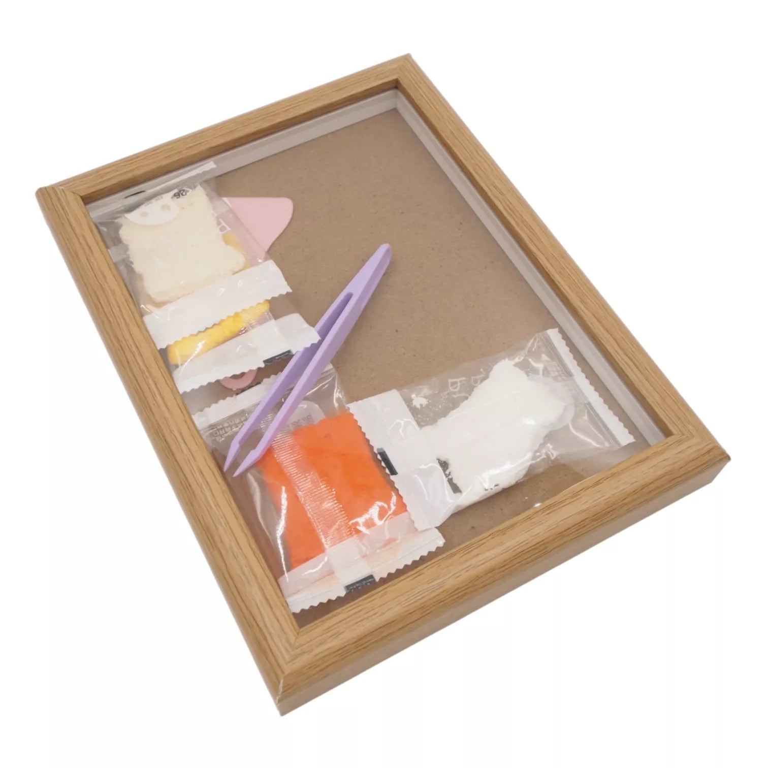 Rinkinys komplektuojamas su tvirtu mediniu rėmeliu – todėl baigtas darbeliukas iškart tampa dekoracija, kuri gali puošti vaikų kambarį, lentyną ar būti įteikta kaip miela, rankų darbo dovana.