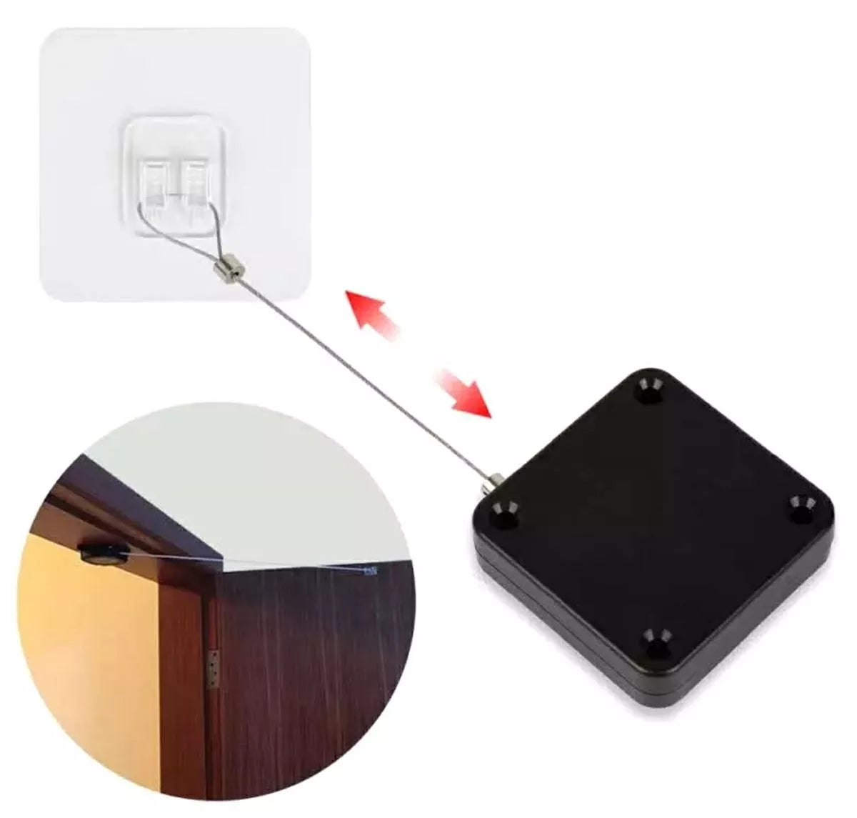 Tvirtas ir kompaktiškas durų pritraukėjas vidaus durims. Labai paprastas surinkimas ir valdymas – tiesiog priklijuokite durų pritraukiklį prie sienos, o tam skirtą rankeną prie durų varčios, tada ištempkite plieninį trosą ir prikabinkite prie rankenos. Visiškai nereikalaujantis priežiūros – nereikalauja jokių papildomų maitinimo šaltinių.